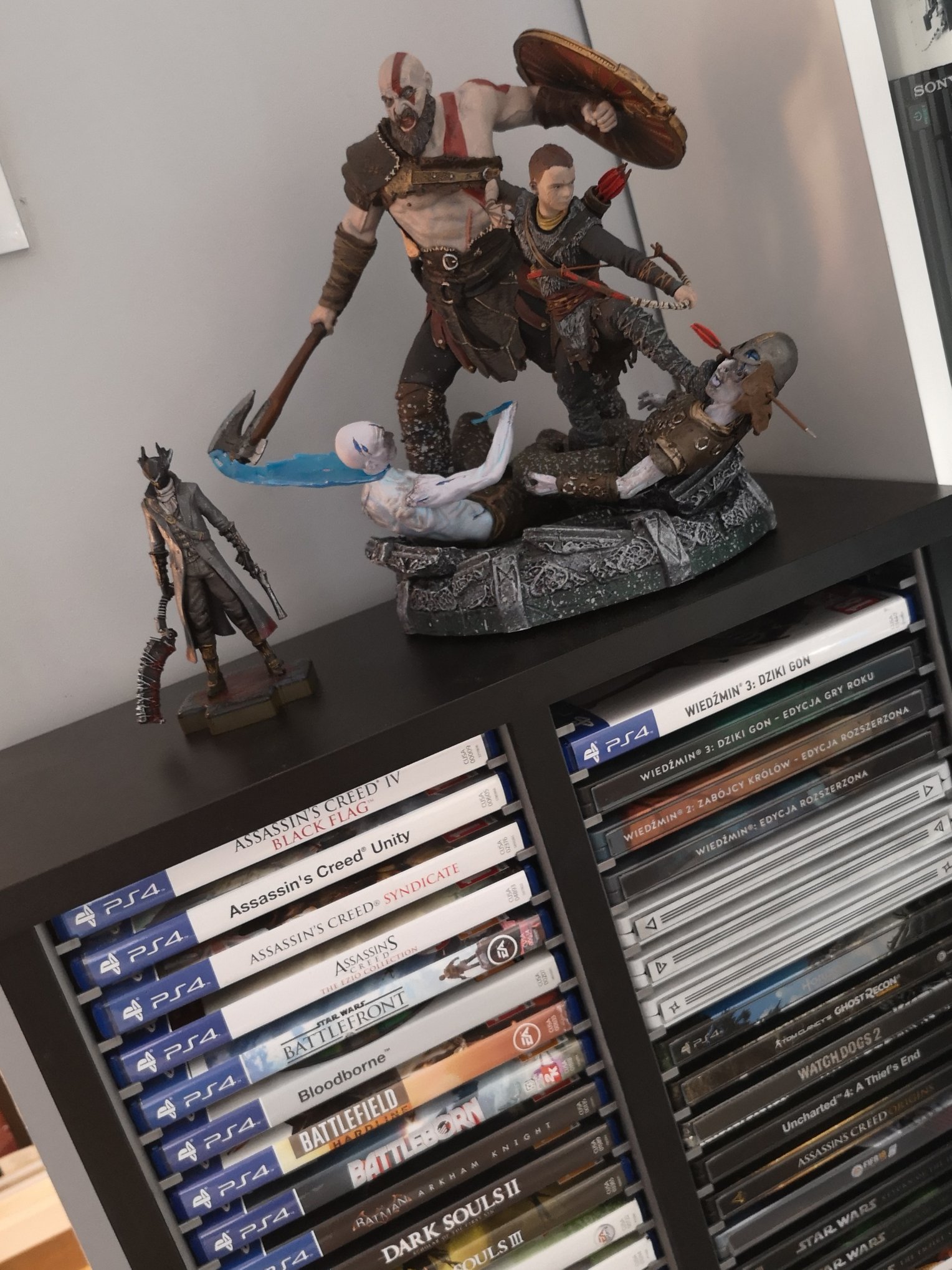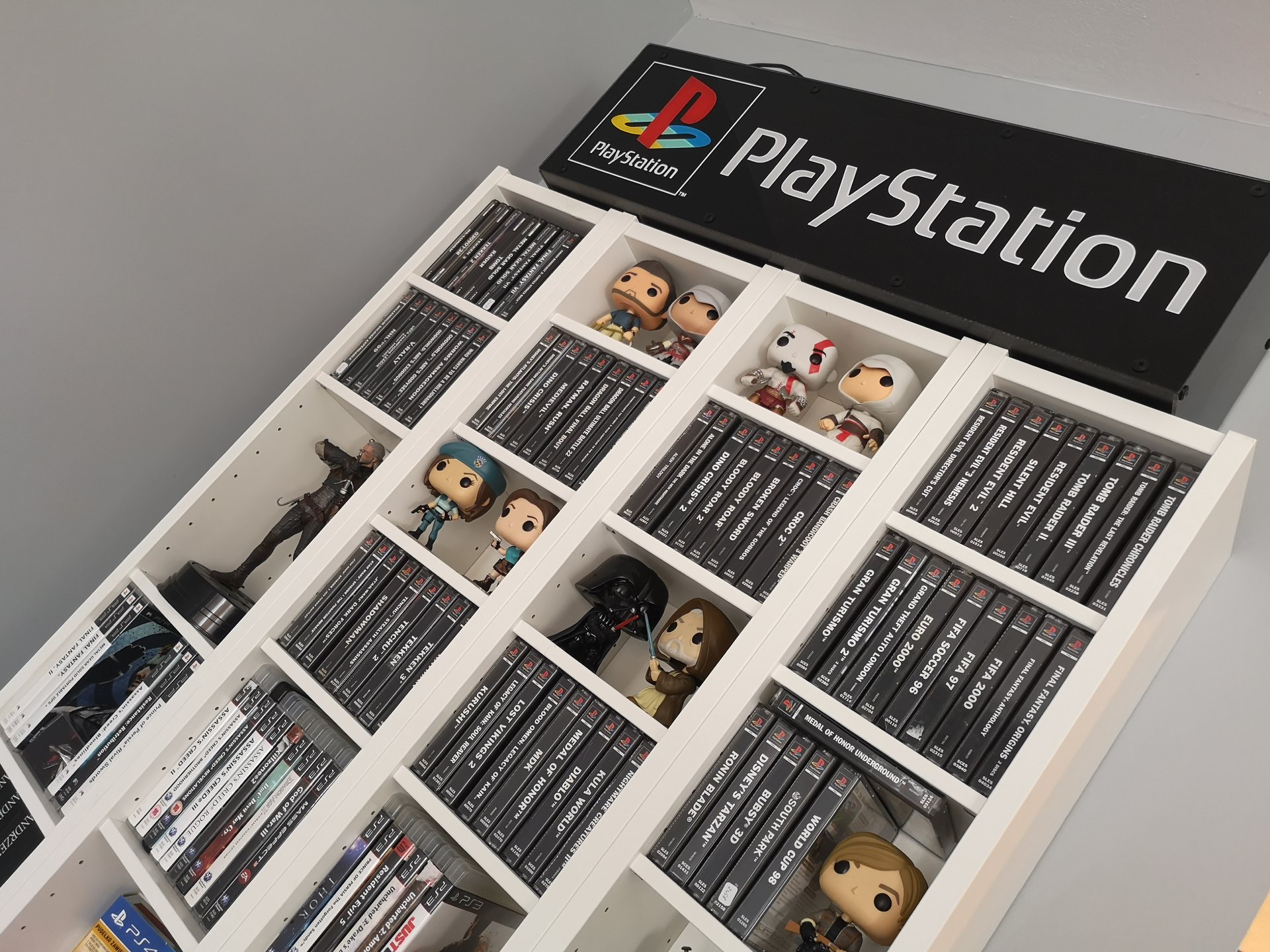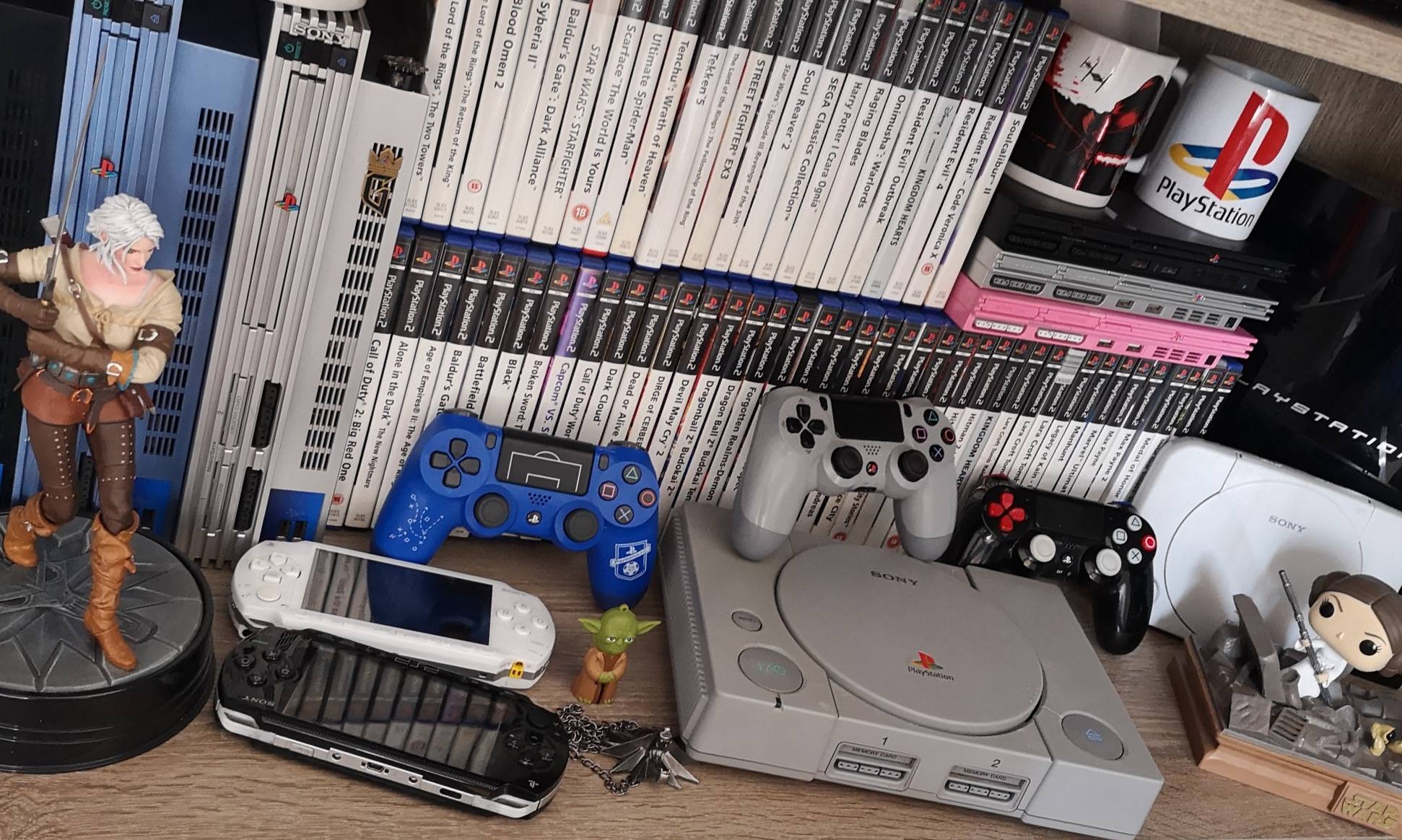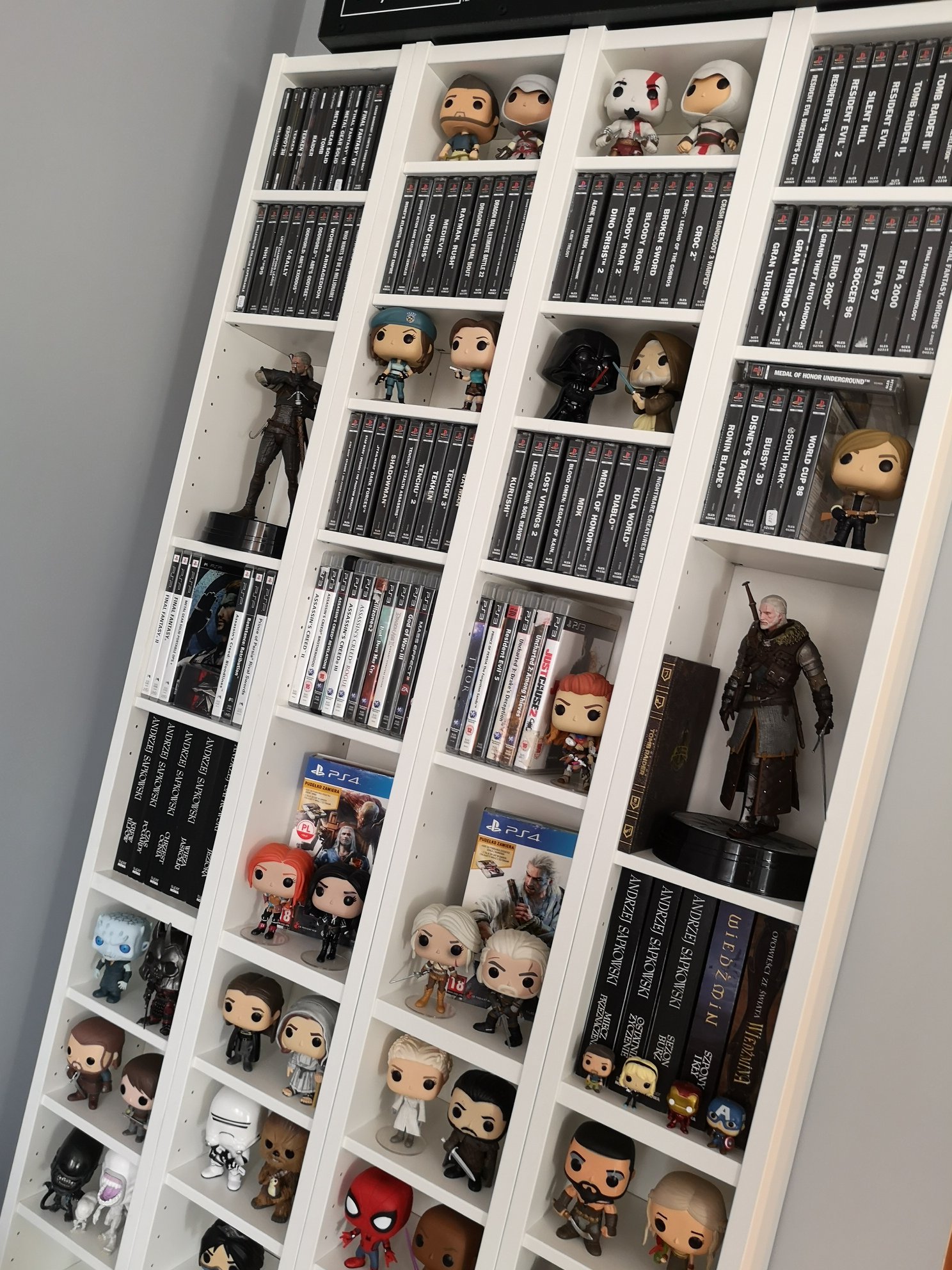 Głównie gry, postanowiłem ograniczyć się tylko i wyłącznie do wszystkich generacji PlayStation. Nie kolekcjonuje gier masowo ani na ilość, każda gra w mojej kolekcji coś dla mnie znaczy, nie znajdziecie tutaj gier których nie lubię a te w które nie grałem policzycie na placach. Są też konsole i figurki ale skupiam sie najbardziej na grach 🙂