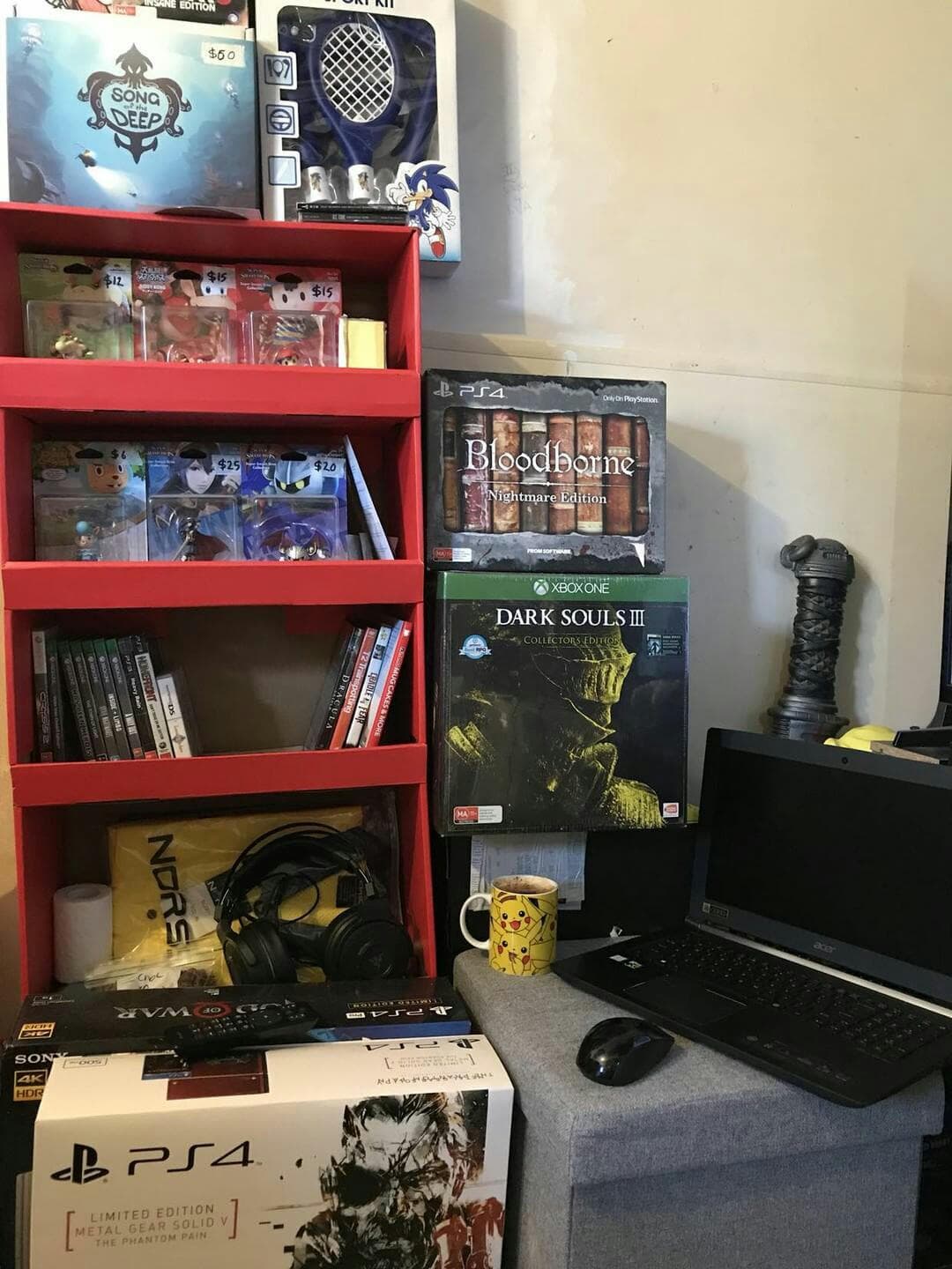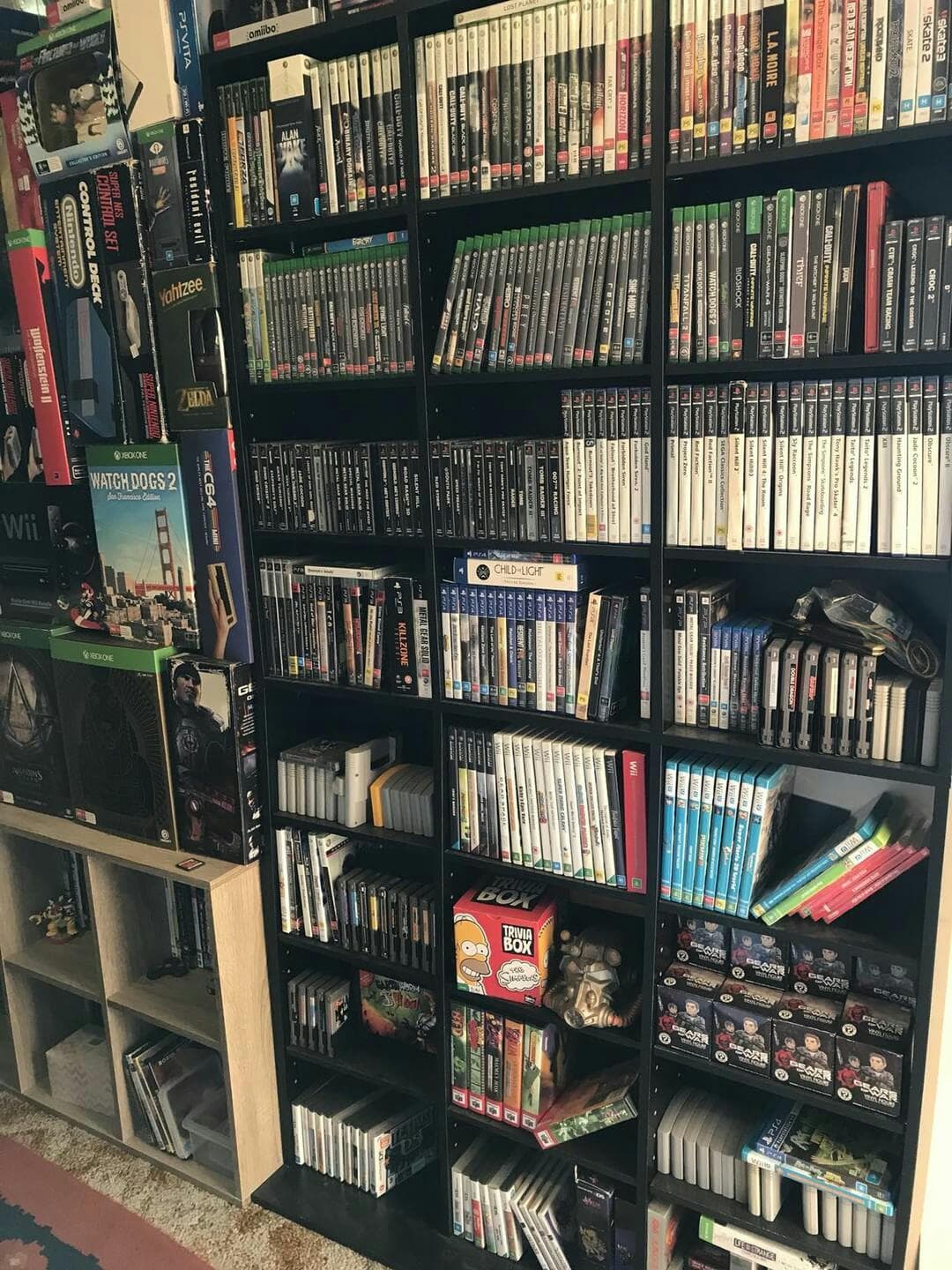 Moja kolekcja jest już całkiem spora, ok. 3000 gier i 100 konsol, do tego niezliczona ilość figurek i growych gadżetów. Rozrosła się ona już do takich rozmiarów, że część muszę trzymać w wynajętym magazynie, gdyż w domu już tego wszystkiego nie jestem w stanie pomieścić.
