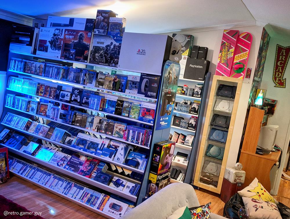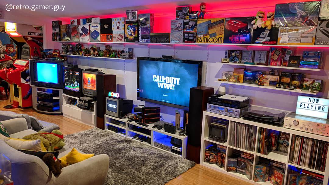 Około 1800 gier na 35 systemów, 5 telewizorów CRT, 2 LCD, 3 Pinballe i 2 automaty arcade. Rzeczywistej liczby posiadanych konsol i ich wariantów nie jestem w stanie podać.. i trochę mnie to przeraża 😀