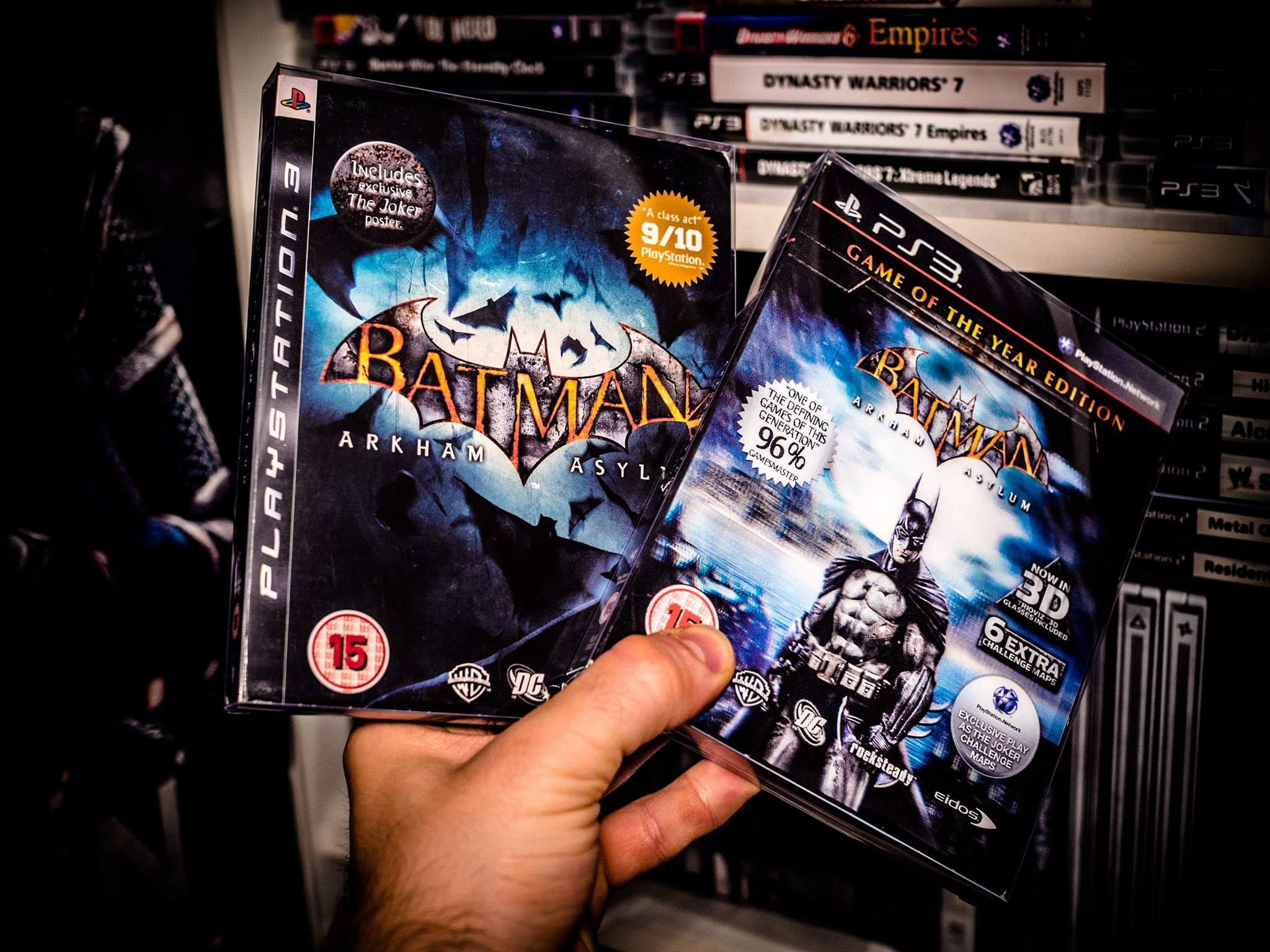 Dzisiaj coś co idealnie wpasowuje się w moje gusta. Dwa wydania Batman Arkham Asylum w obwolutach/slipcover’ach. Wersja podstawowa to najprawdopodobniej wydanie ze sklepu HMV, o którym Wam już wspomniałem kilkukrotnie (i jeszcze czasem wspomnę), w komplecie z plakatem przedstawiającym Jokera.