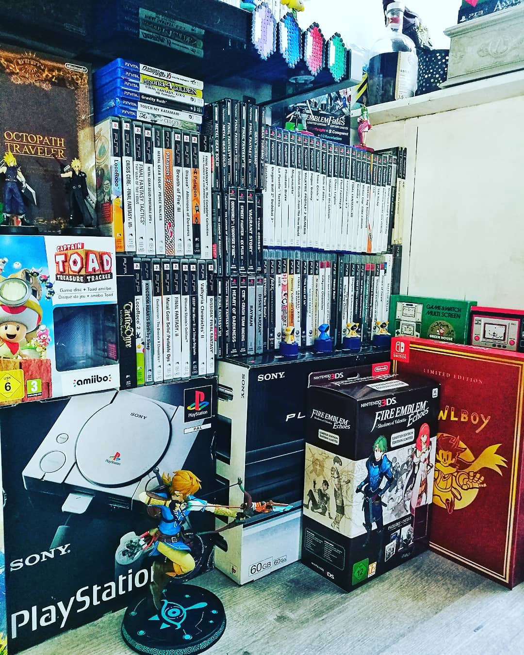 Zbieram praktycznie na każdą platformę poza NES/SNES/N64, gdyż nie miałem tych konsol jako dzieciak a teraz nie jestem w stanie znaleźć oferty, która by skłoniła mnie do zakupu. Jestem wielkim miłośnikiem GameBoy Advanced, z którym wiąże się też moja słabość do kompletnych gier w oryginalnych, kartonowych opakowaniach. Do tego dochodzą gry na PlayStation od 1 do 4, Xbox od oryginalnego do One, GameBoy, GameBoy Color, Nintendo DS, Nintendo 3DS, Nintendo GameCube, Sega Master System, Sega MegaDrive. Oprócz typowo growych fantów, zbieram również rzadkie karty do Magic The Gathering, płyty winylowe, książki…. Wiem, mam trochę problem ze zbieractwem.