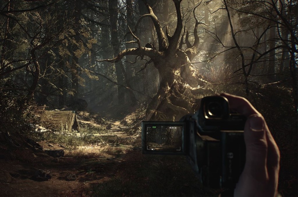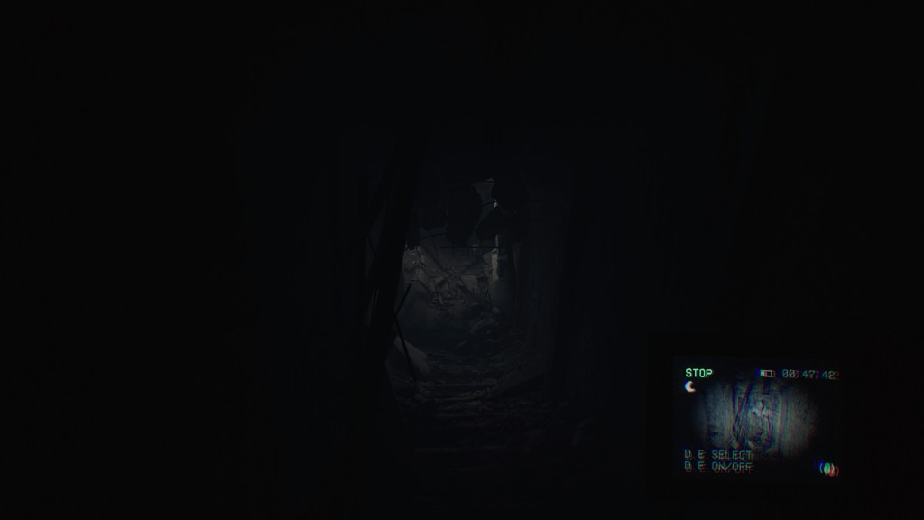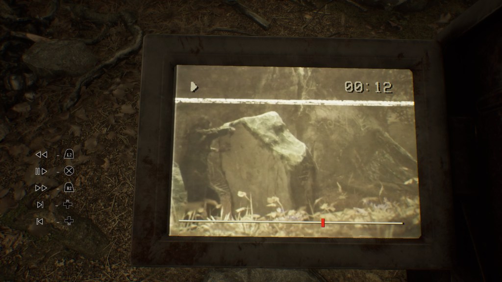 Kolejnym, przydatnym przedmiotem, jest wspomniana wcześniej kamera, która poza wspomnianym wcześniej trybem noktowizora, pełni jeszcze jedną, ważną rolę w rozgrywce. Mianowicie, co jakiś czas znajdujemy kasety, które można odtworzyć przy jej użyciu. Na owych kasetach, nagrane są fragmenty wydarzeń, które rzucają trochę światła na wszystko co dzieje się w koło. Oprócz samego powiększania wiedzy, taśmy te odrywają jeszcze jedną ważną rolę w pchaniu fabuły do przodu – świat w koło nas jest w pewien sposób połączony z tym co widzimy na ekranie kamery, i tak na przykład, jeśli widzimy leżący głaz, a na filmie możemy zobaczyć w sposób został przewrócony to przewijając do odpowiedniego fragmentu, jesteśmy w stanie podnieść kamień w realu. Muszę przyznać, że ten patent mega mi przypadł do gustu.