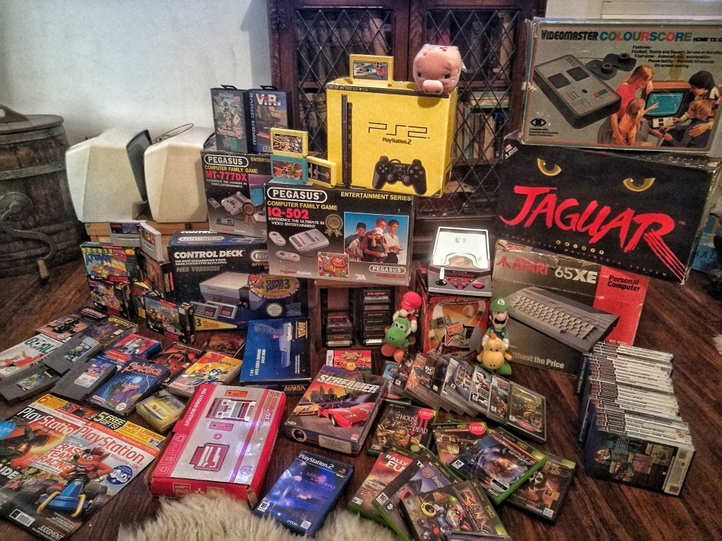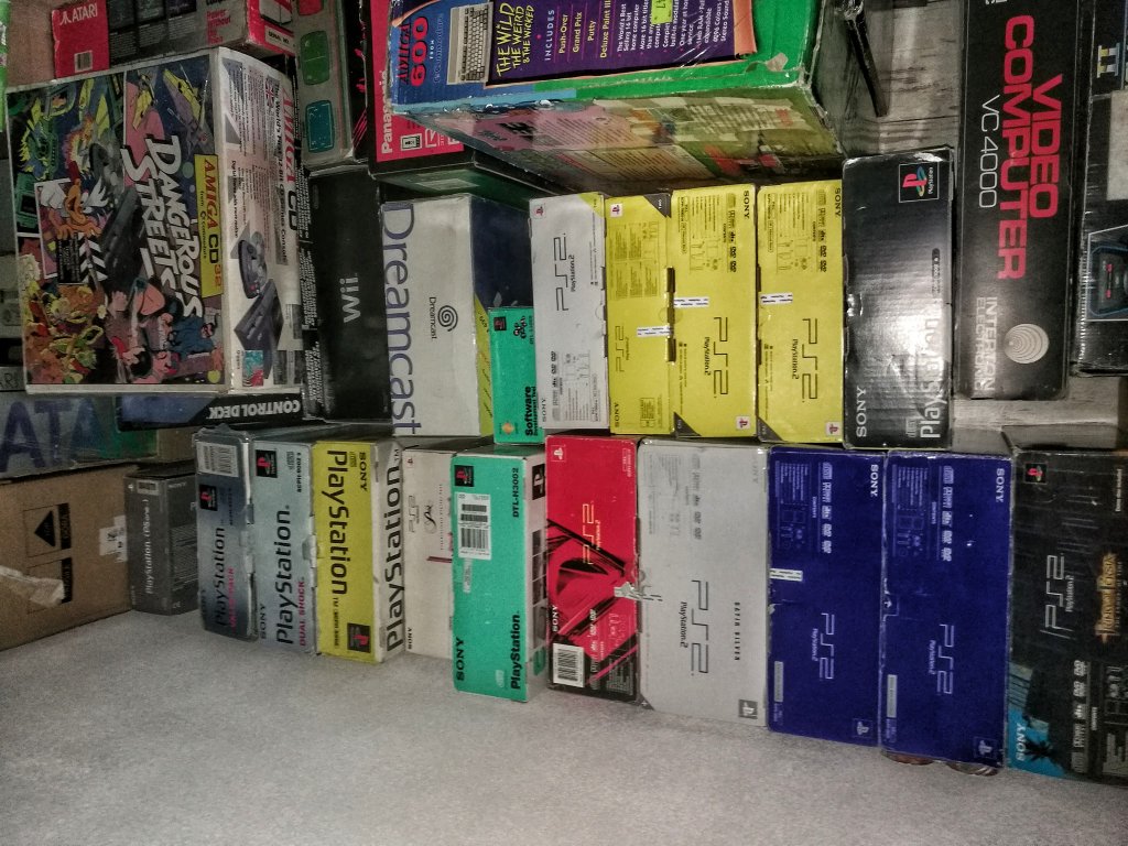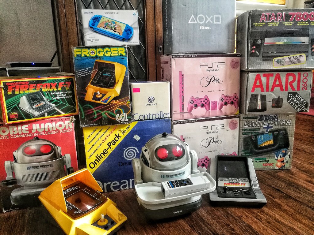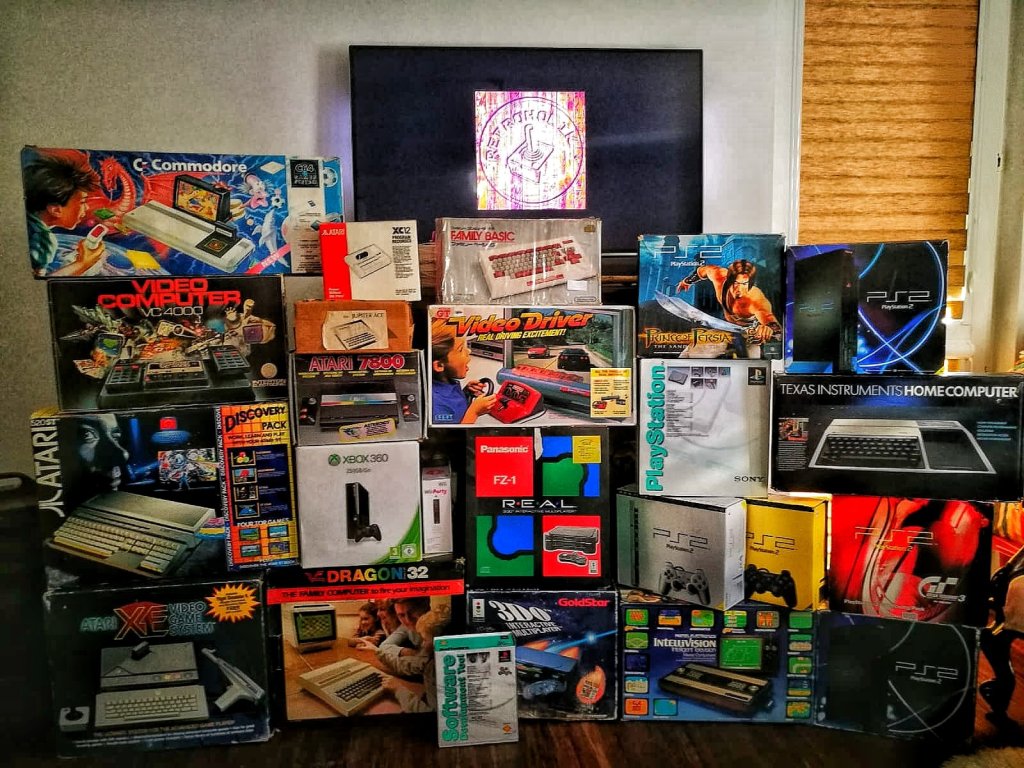 Na początku (ok. 1984) kolekcjonowałem piraty na Amigę, były mi potrzebne do handlu na giełdach komputerowych. Takie czasy były 😆 marzeniem było posiadanie oryginałów. Później zmieniło się to w zbieranie sprzętu czysto sentymentalnie, nie patrząc na stan (byle mieć). Teraz od 15 lat zbieram tylko sprzęt kompletny w oryginalnych opakowaniach. Niektórzy nazywają to zbieractwem, dlatego że moja kolekcja nie na kierunku. Nie zamknąłem się na jednej platformie, ogólnie ujmując temat – kolekcjonuje retro w najszerszym tego słowa znaczeniu. Wszystko co zostało wyprodukowane po roku 1971r. Konsole, komputery, handheldy, posiadam również dużą kolekcję robotów (Omnibot 2000 , Androbot od Atari), automaty do gier, flippery, owocówki. Wilczą część kolekcji zajmują odbiorniki CRT (JVC videosphere, JVC capsule, Philips discoverer itp.). Do tego sprzęt audio oczywiście retro ( np. Sharp vz3000).