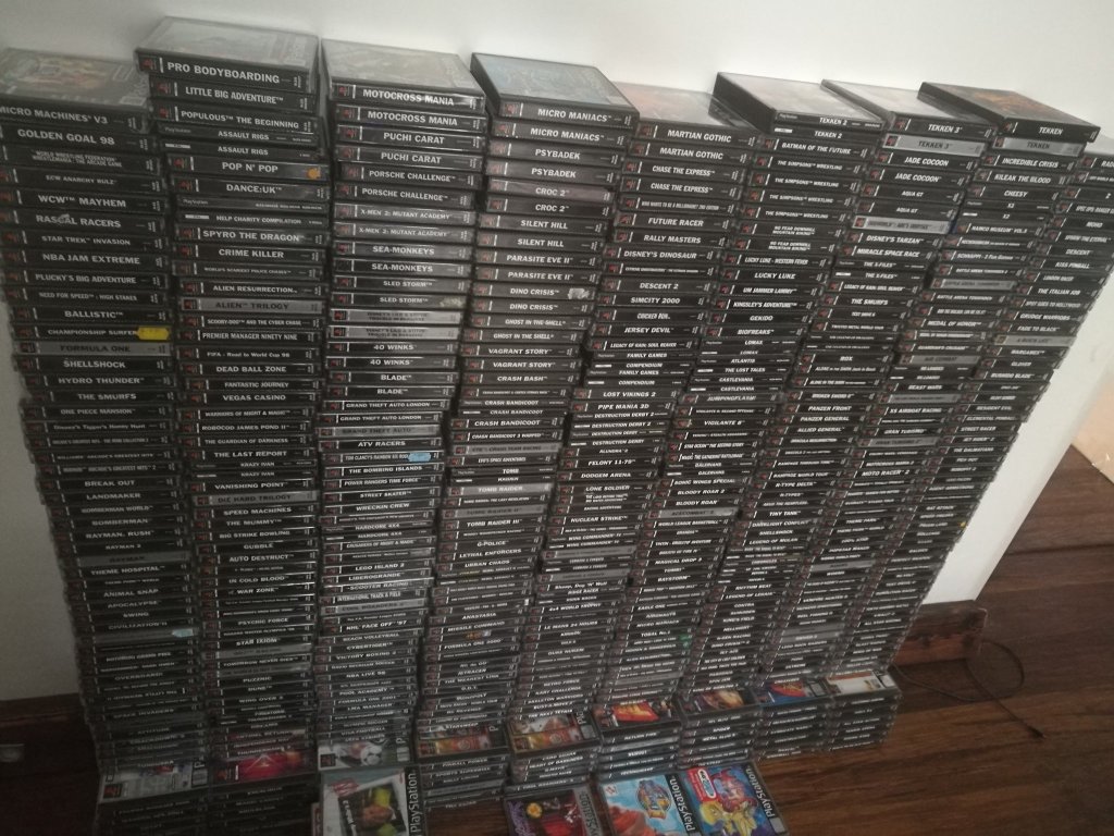 Ciężko jednoznacznie odpowiedzieć, nigdy nie zrobiłem „remanentu” jest ciężko powiedzieć jak duża, są w niej konsole od pierwszej do ósmej generacji, z naciskiem do czwartej.