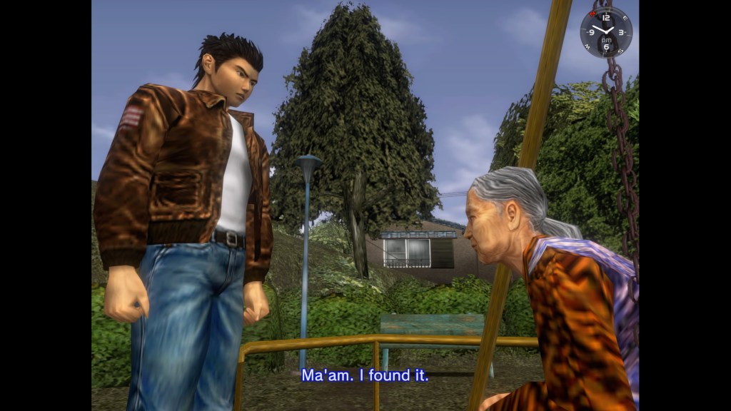 Skoro już nakreśliliśmy sobie tło fabularne to przejdźmy do samej gry, bo czym tak właściwie jest Shenmue? Mamy tutaj do czynienia z grą przygodową, osadzoną w pewnego rodzaju otwartym światem, z elementami zręcznościówki i bijatyki. Niezły mix prawda? Sam Yu Suzuki, określa swoją produkcję jako Full Reactive Eyes Entertainment, w skrócie FREE, co doskonale oddaje to w jaki sposób Yu chciał aby jego gra wyglądała – symulator życia z wplecioną historią, która jakby się dobrze zastanowić, mogą wydarzyć się naprawdę. Rozgrywka w dużej mierze opiera się na przemierzaniu kolejnych lokacji, których w grze mamy kilka, rozmawiając z kolejnymi postaciami aby uzyskać dalsze wskazówki co do tego gdzie mamy się udać, z kim pogadać i co zrobić. Tak np. Ryo trafi na trop, że zabójca mógł być Chińczykiem, wiec naturalną koleją rzeczy będzie znaleźć innych chińczyków aby spróbować się czegoś dowiedzieć – po nitce do kłębka. Wszystkie wnioski zapisywane są w notesie do którego możemy wrócić i który jest naszą skarbnicą zawierająca wszystkie informacje jakie udało nam się do tej pory zebrać jak i zaplanowane aktywności.