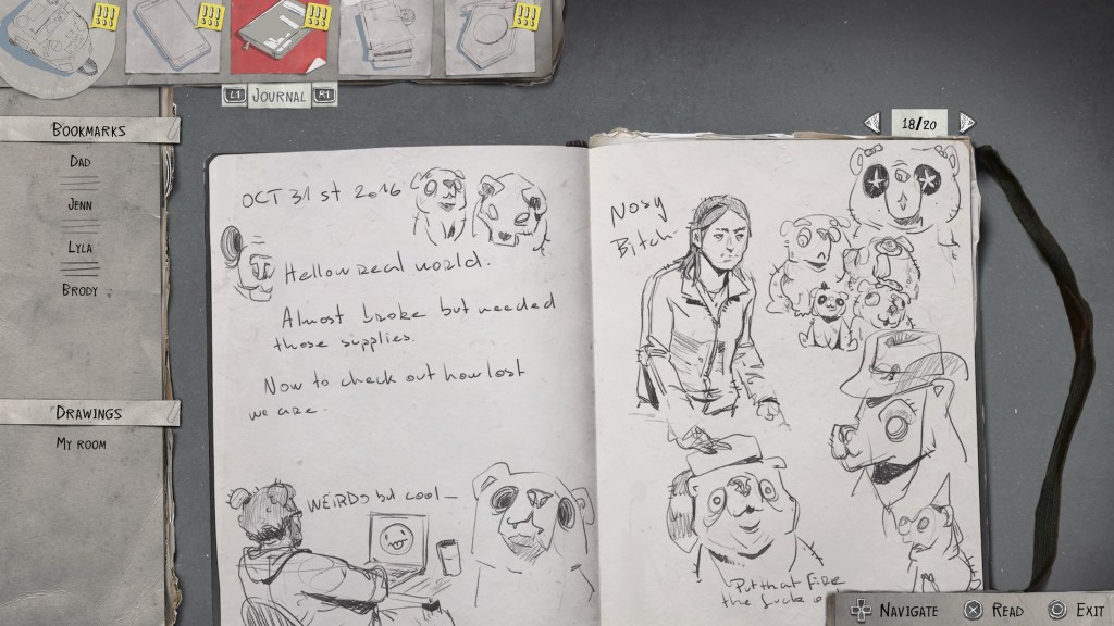 Gra podzielona jest na pięć odcinków, co mnie osobiście zawsze odrobinę irytuje (nie należę do zbyt cierpliwych), a każdy z nich rozpoczyna się wstępem w formie krótkiej opowieści oraz jest zupełnie odmienny w kontekście czasu i miejsca w stosunku do poprzedniego. Choć na początku mnie to odrobinę drażniło, bo przyzwyczajony byłem do tego, że zwykle te epizodyczne przygodówki trzymają się jakiegoś spójnego ciągu wydarzeń następujących po sobie, tak gdzieś przy trzecim epizodzie zmieniłem zdanie, gdyż koniec końców zabieg ten pozwolił w jednej opowieści, zawrzeć ich aż pięć, gdzie wspólnym mianownikiem są bracia Diaz, co też dość mocno urozmaiciło opowiadaną historię. Przez kolejne epizody obserwujemy jak nasze wilki radzą sobie z całą sytuacją i jaki ma to wpływ na każdego z nich. Nikogo pewnie nie zdziwi, kiedy powiem, że gra oparta jest na wyborach, które mają mieć wpływ na rozgrywkę. Przez pierwsze kilka godzin wydawało mi się, że są one tylko iluzoryczne, bo często niezależnie od tego co wybrałem (a zdarzało mi się kilkukrotnie ładować ostatni plik zapisu, żeby sprawdzić co się stanie) i tak historia biegła swoim życiem. Jednak pod koniec, zdałem sobie sprawę, że się myliłem bo okazało się, że z pozoru błahe rzeczy miały ogromny wpływ na to jak zachowują się nasi bohaterowie. Daniel patrzy na swojego brata jak na wzór do naśladowania, wszystko co robi i czego nie robi Sean, ma odzwierciedlenie w tym kim staje się jego młodszy brat, i tak np. jeśli w odpowiednim momencie nie skarcimy go za przeklinanie to później usłyszymy z jego ust kilka niekoniecznie ładnych zwrotów, podobnie wygląda sprawa bycia uczciwym czy agresywnego reagowania – gra tak naprawdę ciągle przypomina nam, że chcąc nie chcąc jesteśmy odpowiedzialni za naszego towarzysza podróży, nie tylko w kwestii jego bezpieczeństwa ale również jego kompasu moralnego.