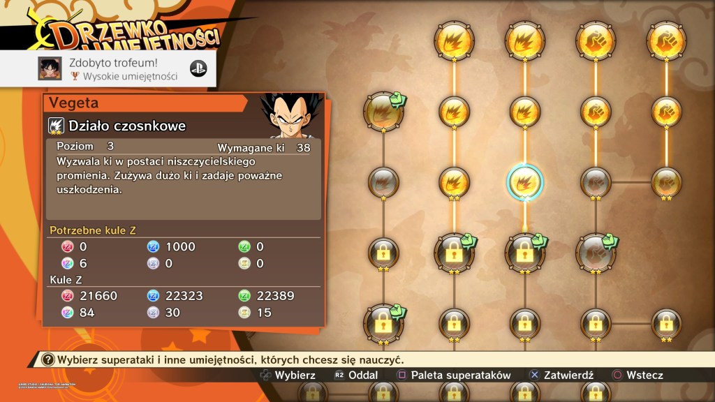 Aby zobaczyć napisy końcowe, musiałem poświecić nieco poniżej 40 godzin, co jest wynikiem naprawdę dobrym. W tym czasie udało mi się ograć główną linię fabularną, posiąść większość ataków specjalnych, wykonać kilka (jak nie kilkanaście) misji pobocznych. Całość podzielona jest na cztery główne rozdziały – Saiyan, Frieza, Androids i Majin Buu Saga, które to z kolei posiadają od 7 do 10 podrozdziałów. Dla spragnionych gry, twórcy umożliwiają kontynuowanie przygody po zakończeniu wszystkich rozdziałów, co może znacząco wydłużyć czas gry, a dodatkowo chodzą plotki o nadchodzących DLC. W skrócie – jest tu co robić przez długi czas!