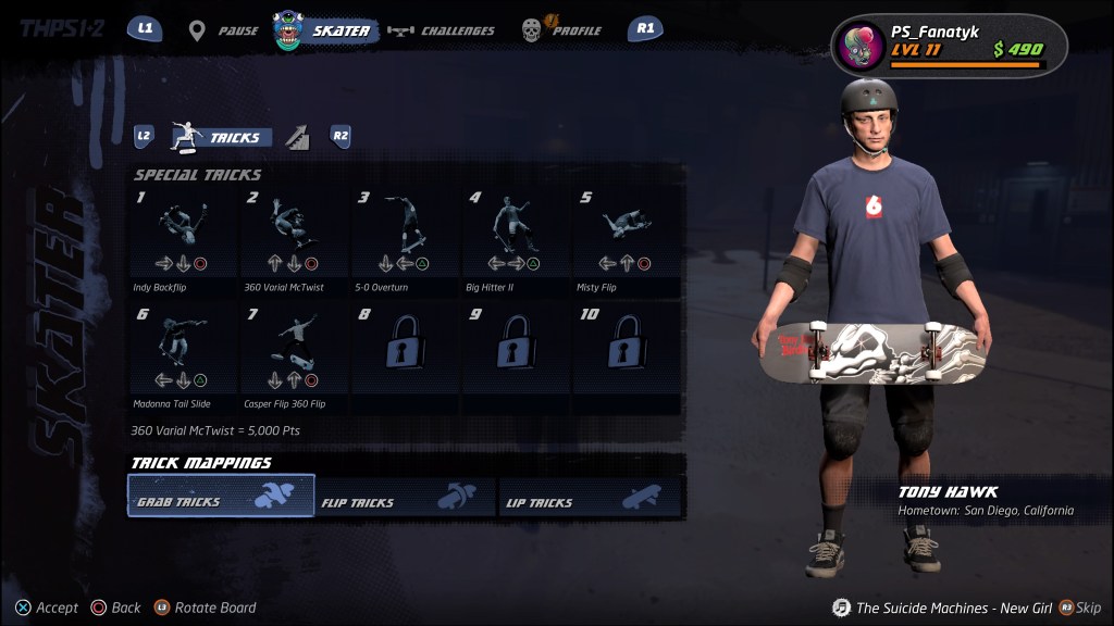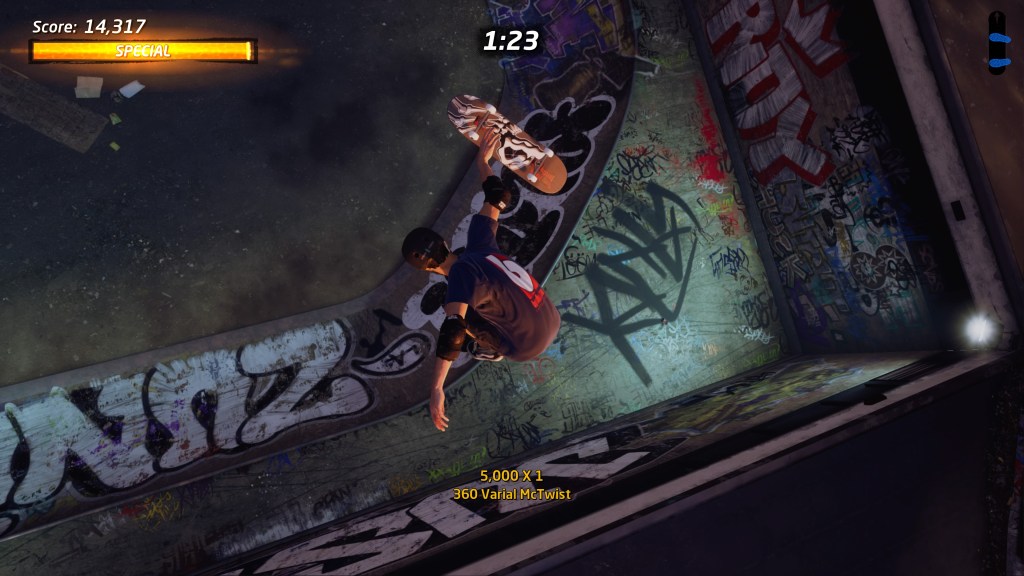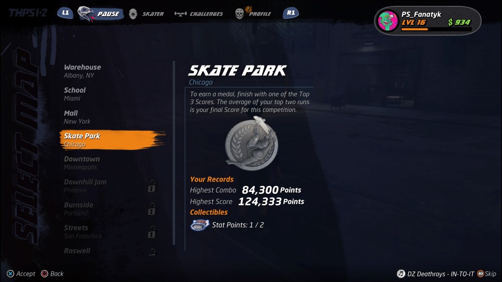 W grze znajdziemy 21 deskorolkarzy, zarówno tych ze starej gwardii jak Bob Burnquist, Chad Muska, Elissa Streamer, jak i świeża krew w postaci choćby Leo Bakera, Letici Bufoni czy Aoir Nishimura – każde z odmiennym stylem jazdy i swoimi statystykami. Niezależnie od tego, kogo wybierzemy jako swój avatar, to w czasie gry możemy poprawić jego statystyki zbierając specjalne punktu (zwykle 2-4 na planszę), dostosowywać tricki specjalne (10 slotów, z czego 5 do odblokowania), zmieniając wygląd czy deskę. Podobnie jak z miejscówkami – jeśli komuś mało to zawsze może stworzyć swojego skatera od podstaw, wykorzystując dostępne assety lub kupując dodatkowe w skateshopie. Z zakupami tymi nieodłącznie wiążą się „challenge”, których jest SIEDEMSET CZTERNAŚCIE!!!! Wyzwania są podzielone na pięć kategorii: skater, combo, multiplayer, skate park i create-a-park, zachęcając graczy do maksymalnego wykorzystania każdego aspektu gry – kiedy piszę ten tekst, mam zaliczone zaledwie jakieś ~20% z nich więc jeszcze sporo godzin przede mną.