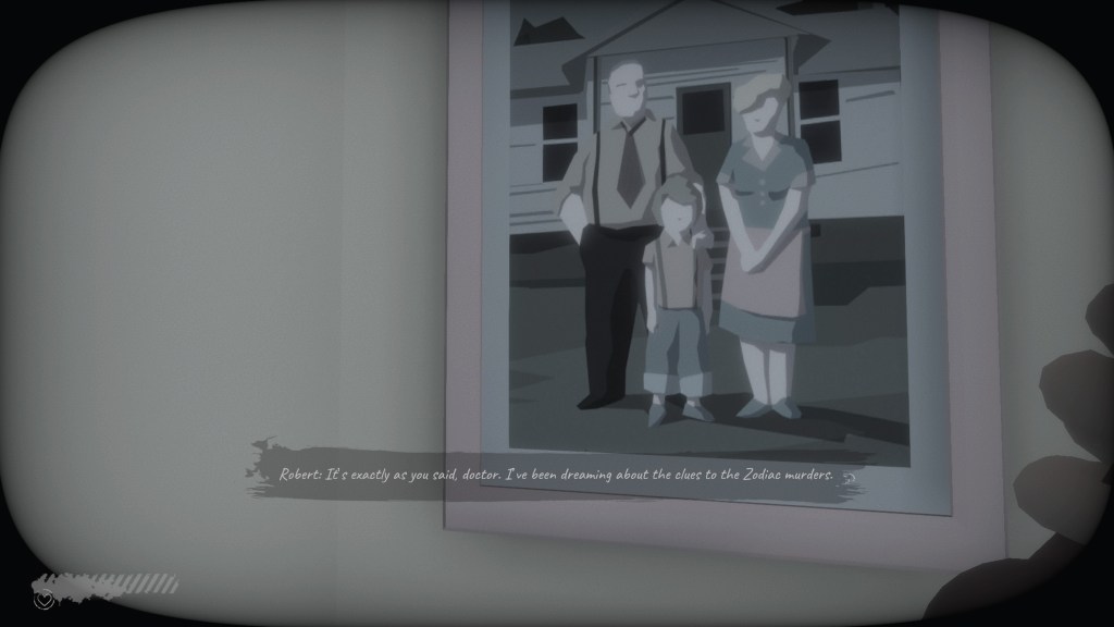 This is Zodiac Speaking, wykorzystuje modny ostatnio schemat „symulatora chodzenia” z widokiem z perspektywy pierwszej osoby, w którym to całość rozgrywki opiera się na przemieszaniu kolejnych lokacji, zbieraniu wskazówek i rozwiązywaniu prostych zagadek logicznych. Sam system odwiedzania kolejnych wizji naszego bohatera, przypominał mi nieco system znany choćby z The Sinking City czy Detroit Become Human, gdzie w danej lokacji musimy na podstawie zebranych wskazówek, odtworzyć przebieg wydarzeń. Opcjonalnie, podczas naszego śledztwa, tropić nas będzie sam Zodiak, co bywa mocno irytujące, gdyż z racji ograniczonej staminy, w zasadzie zawsze nas łapie i musimy wracać do ostatniego punktu kontrolnego (lub początku lokacji).