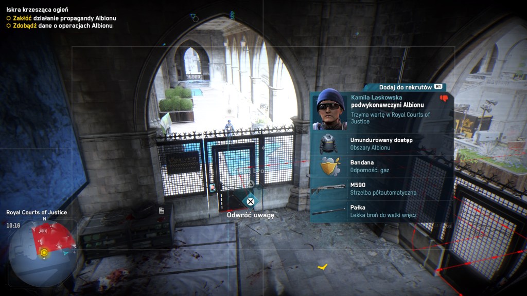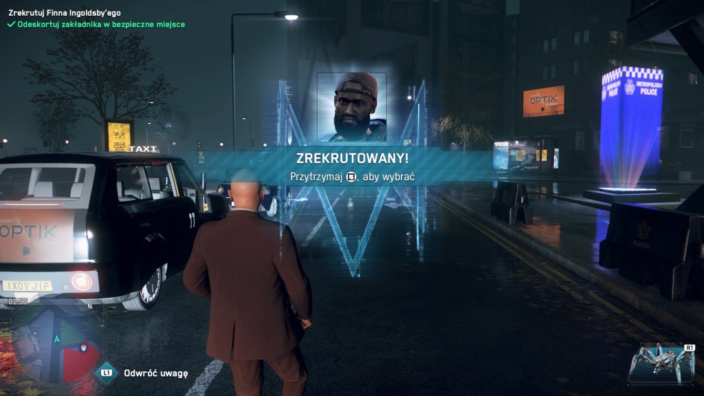 Wyzwalanie dzielnic to jednak niejedyna możliwość powiększania naszego stada, gdyż twórcy oddali do naszej dyspozycji możliwość rekrutacji… praktycznie każdego mieszkańca miasta. Na początku trochę pokpiłem sobie tę kwestię jednak szybko zrozumiałem, że to nie tylko dodatek mający przedłużyć czas spędzony z grą, a coś, co ma naprawdę realny wpływ na grę. Misje bywają naprawdę różnorodne – od zdobycia informacji, przez znalezienie zaginionego przyjaciela, po bardziej bezpośrednie środki wymierzania sprawiedliwości. „Agenci” różnią się od siebie nie tylko wyglądem i bronią, jaką się posługują, ale często to kim są, ma znaczenie – tak na przykład prawnik pozwoli nam szybkiej wyjść z aresztu (lub go całkowicie uniknąć), pracownik służby zdrowia pomoże nam dość do siebie, jeśli nieco przegniemy z rozwałką, a budowlaniec posiada na wyposażeniu drona użytkowego, który może być przydatny w dostaniu się w pewne miejsca. Co więcej, od czasu do czasu, na naszej drodze dostaniemy ograniczoną czasowo, szansę na zwerbowanie wykwalifikowanego rekruta, który może stać się ważnym atutem naszej ekipy. Kwestia odbudowywania potęgi DedSec, może jeszcze bardziej zyskać na wartości, jeśli zdecydujemy się na rozgrywkę w trybie permanentnej śmierci, w którym to nasi agenci, w przypadku ciężkich obrażeń, nie trafiają do szpitala, a prosto sześć stóp pod ziemię.