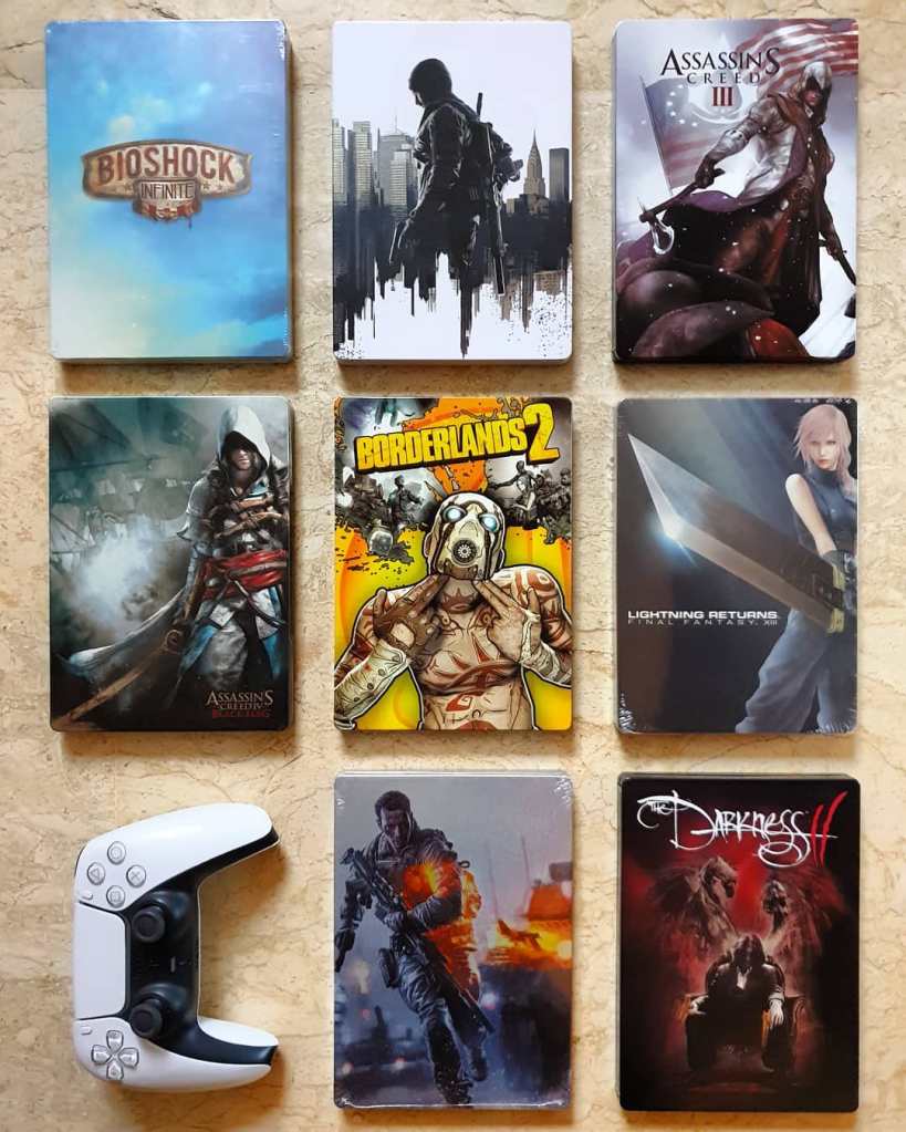 Jest tyle piękych setów, które chciałbym zdobyć. Starałem się zbierać wszystkie możliwe steelbooki, jakie się ukazały wraz z grami, jednak teraz wydaje mi się to praktycznie niemożliwe. Często gry posiadają różne wydania np. zależnie od regionów, które zawsze staram się zdobyć i pokazać na moim Instagramie. Dzięki temu więcej osób może się o nich dowiedzieć i dodać do swojej listy zakupów.