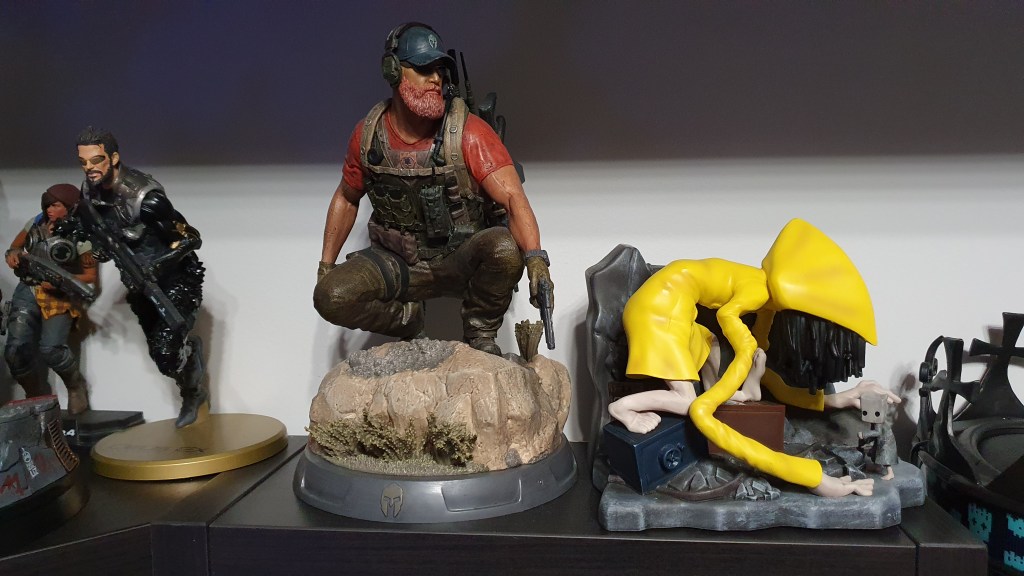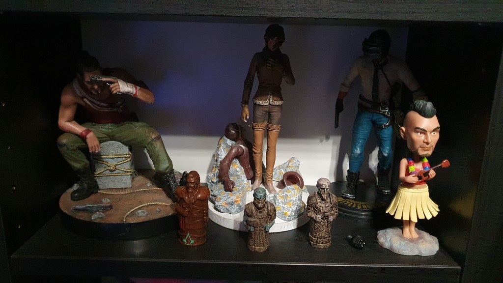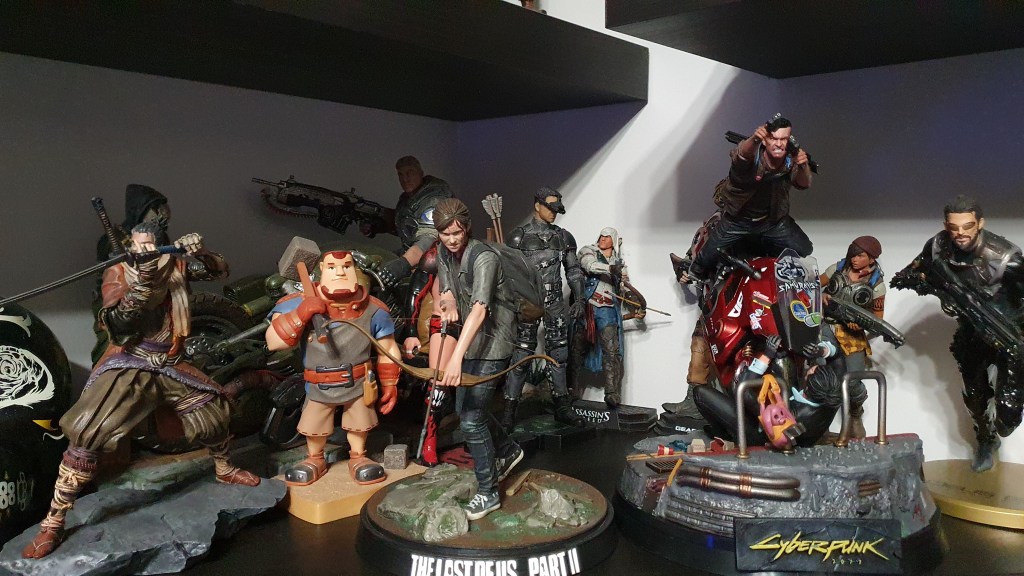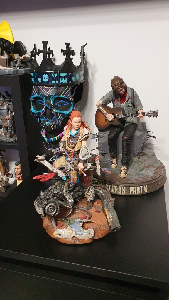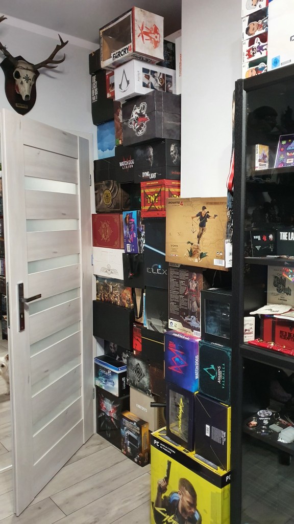 Moją najcenniejszą zdobyczą w kolekcji jest edycja kolekcjonerska Horizon Zero Dawn, którą na urodziny podarowała mi rodzina. Do cennych zdobyczy mogę zaliczyć figurkę z Dying Light 2 (374/1500, E3), figurkę Little Nightmares 2 (89/150) oraz figurkę z Assassin’s Creed (skok wiary, od Żony).