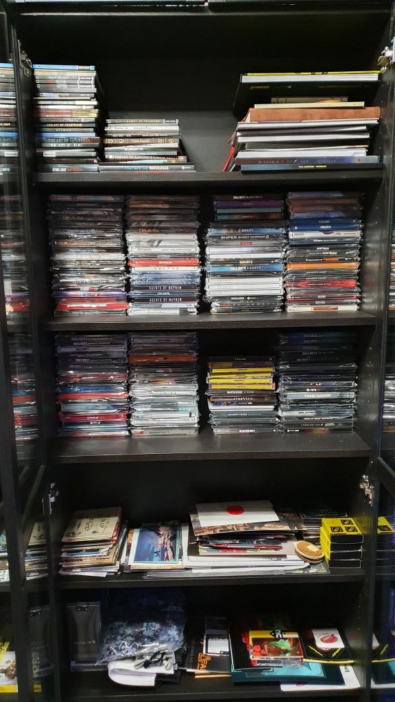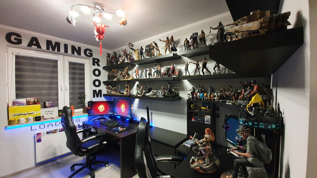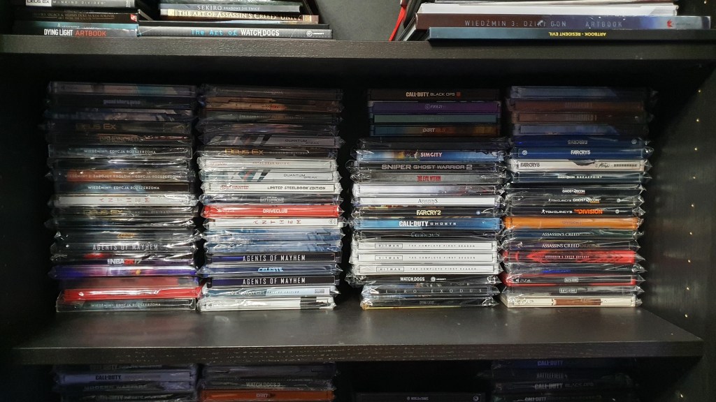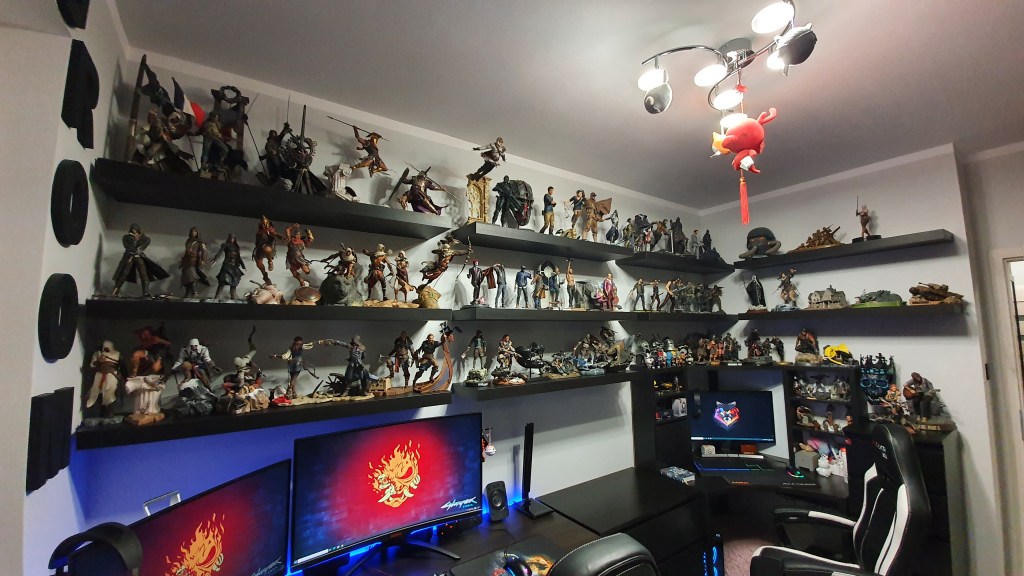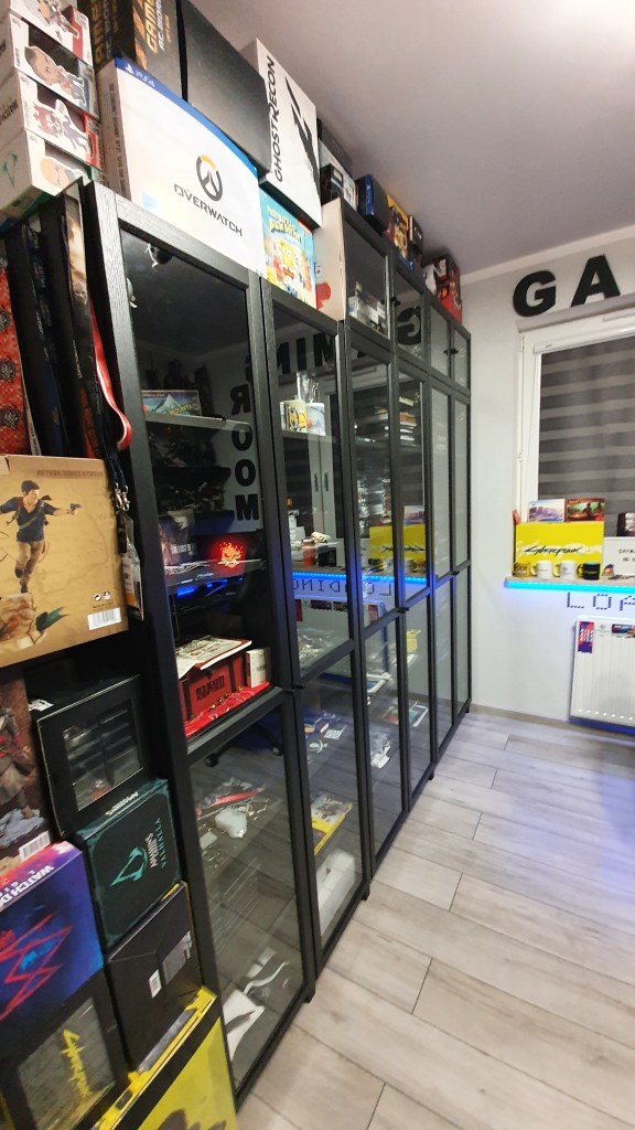 Nigdy nie robiłem dokładnych spisów tego co mam. Za każdym razem mnie to przerastało. Na pewno jest koło 110 figurek, 150 steelbooków, koło 500 gier.
