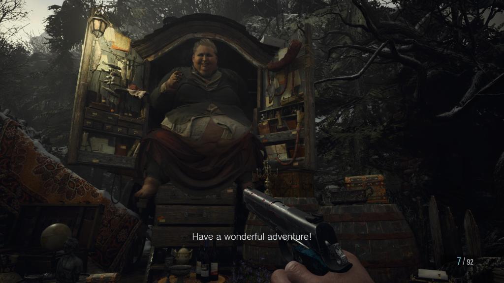 Choć nie zawsze będzie ona dla nas najlepszym rozwiązaniem to nie można zapomnieć o walce, która zdecydowanie przypomina tutaj to, co dostaliśmy w Resident Evil 4 – miks mniej lub bardziej agresywnych przeciwników, barykadowanie się w pomieszczeniach, całkiem pokaźny arsenał broni z możliwością jego rozbudowy i no oczywiście perła w koronie, czyli postać handlarza Duke’a, który zaopatrzy nas w zapasy amunicji czy apteczek, a tak że ugotuje dla nas danie, które podniesie nasze statystyki. Swoją drogą wiąże się z nim nawet easter egg nawiązujący do 4., a który to gracze odkryli jeszcze w demie (na zachętę powiem tylko, że to nie jedyne nawiązanie do poprzednich odsłon jakie można znaleźć w grze).