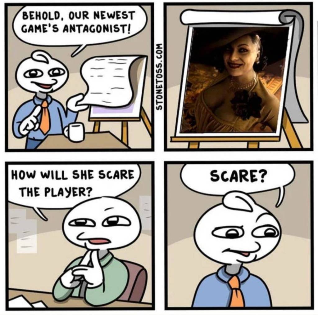 Ostatnie odsłony serii, przyzwyczaił nas do mniej lub bardziej liniowej rozgrywki — w której przemieszczaliśmy się z punktu A do punktu B, rozwiązując kolejne zagadki, unikając lub uśmiercając kolejnych wrogów, aby w konsekwencji pchnąć historię do przodu — która to mniej lub bardziej lawirowała pomiędzy horrorem a grą akcji. W Village mamy natomiast istną fuzję smaków. Poznana wcześniej wioska, po uporaniu się z jej obecnymi „mieszkańcami”, staje się czymś w rodzaju naszej bazy wypadowej, z której przyjdzie nam dostać do innych lokacji, jak np. zamek Lady Dimitrescu (dzięki której tytuł stał się memowym viralem jeszcze przed premierą) — liczba mnoga w tym wypadku nie jest przypadkiem, gdyż Capcom poprzez swoje demo i trailery odkryli zaledwie małą część tego co dla nas przygotowali, a Alcina nie jest jedyną, która podniesie Wam ciśnienie (choć w przypadku wielu pewnie podniesie nie tylko to badum tss).