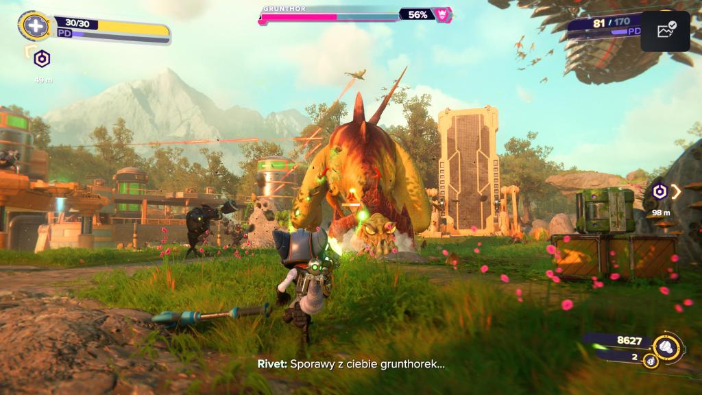 Od razu powiem, że jeśli liczyliście na to, że skoro mamy do dyspozycji nową bohaterkę, to mogą czekać nas spore zmiany w rozgrywce… to muszę was zawieść, gdyż patrząc bardzo ogólnie – Rivet, poza wyglądem nie różni się niczym od Ratcheta, a dokładniej mam na myśli to, że sterowanie obojgiem jest w zasadzie takie same i brak tu np. jakichś specjalnych zdolności rodem z gier kooperacyjnych.