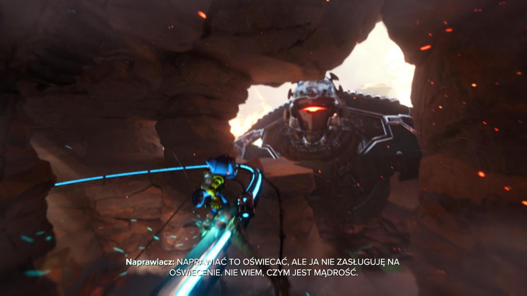 Jeśli chodzi o kwestię, która przy każdej większej premierze wzbudza niemałe dyskusje, to spieszę z wiadomością, że nowe przygody Lombaksa i jego metalowego kolegi (a w zasadzie powinienem to napisać w liczbie mnogiej) otrzymały pełne polskie tłumaczenie wraz z dubbingiem, który wypada naprawdę dobrze (miejscami widać spadek formy jeśli chodzi o jakieś poboczne postacie czy NPC ale poza tym miód malina). Dla wszystkich tych, którzy jednak woleliby oryginalny dubbing + ewentualnie napisy, spieszę się z informacją, że i taka opcja jest dostępna do wyboru.
