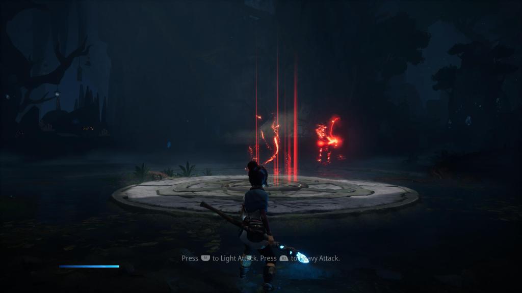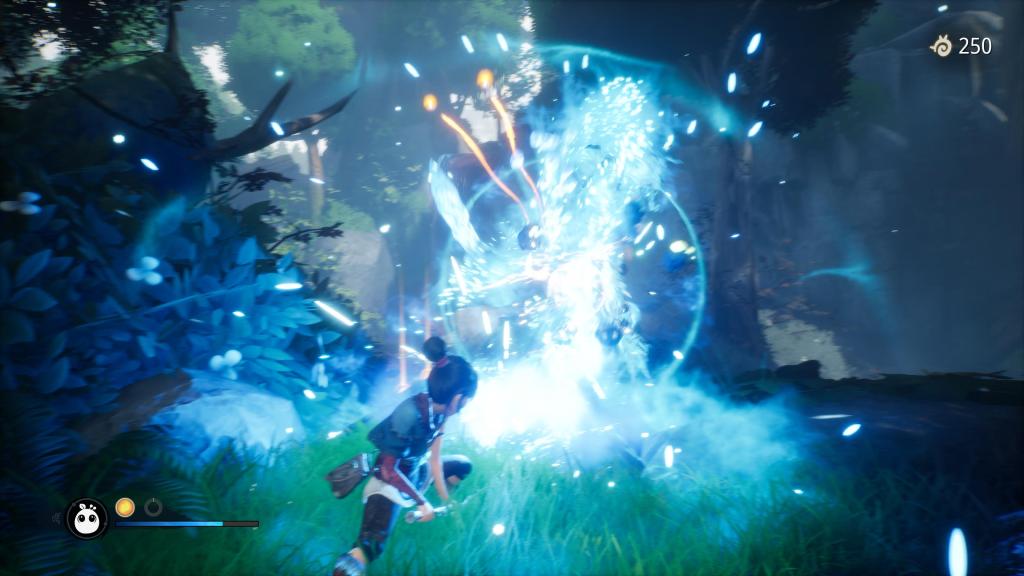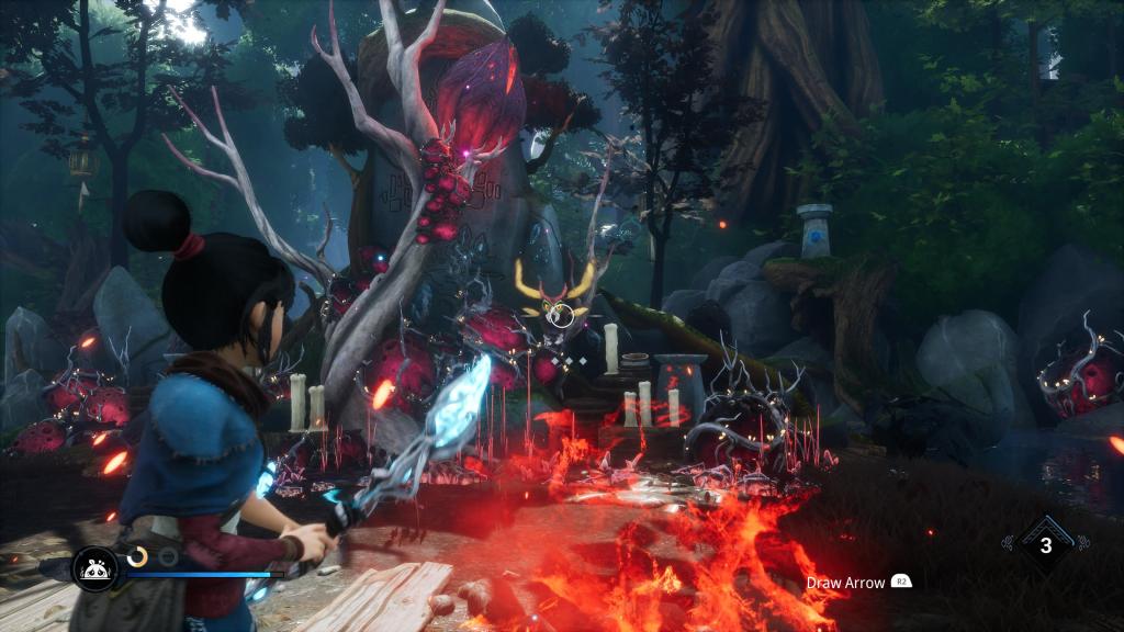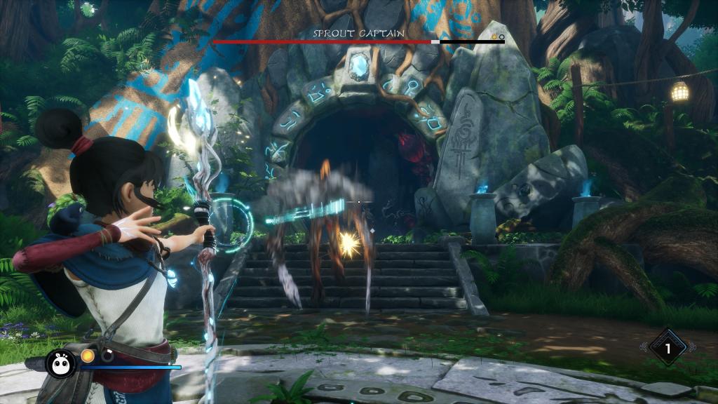 Sama walka nie należy do zbyt skomplikowanych, jednak mimo to daje sporo radości. Od samego początku Kena dzierży swój kij zakończony kryształem, który posiada lekki i silny atak (z możliwością „naładowania” tego drugiego). Z czasem dostaniemy okazję, aby go zupgradeować i wykorzystać jako magiczny łuk, a nasza bohaterka zyska kolejne ataki i umiejętności — o ile uda nam się nazbierać odpowiednią ilość tutejszych punktów doświadczenia (swoją drogą w dniu premiery część graczy narzekała, że punkty te ulegały nagłej degradacji bez jakiegokolwiek powodu, co powinno być naprawione przez ostatnio wydaną łatkę).