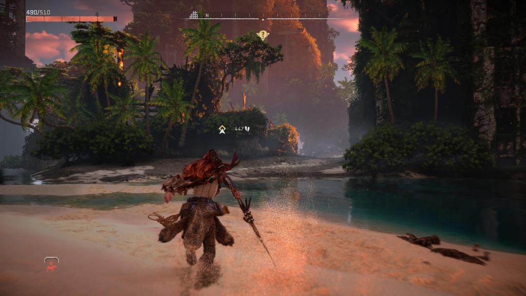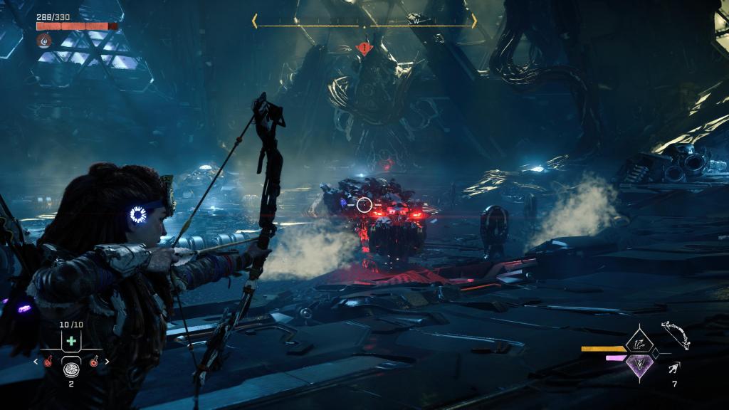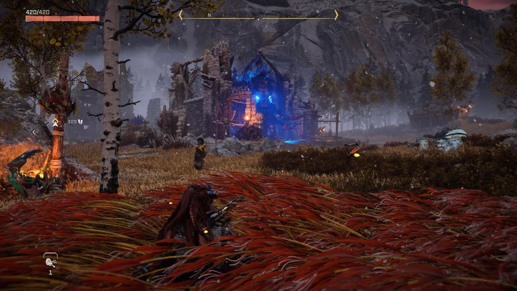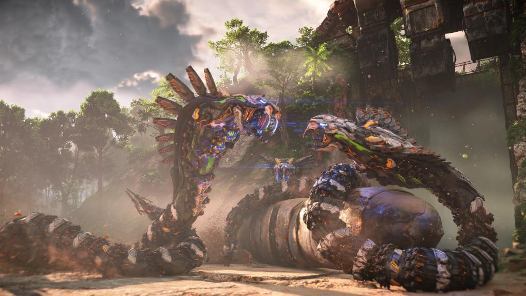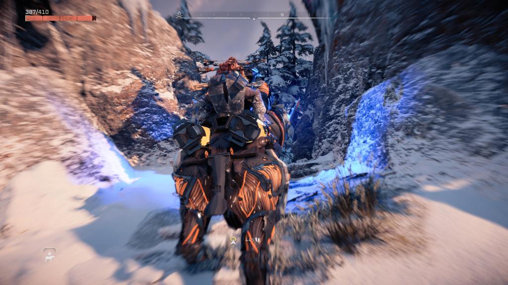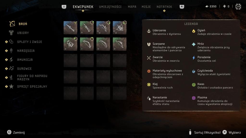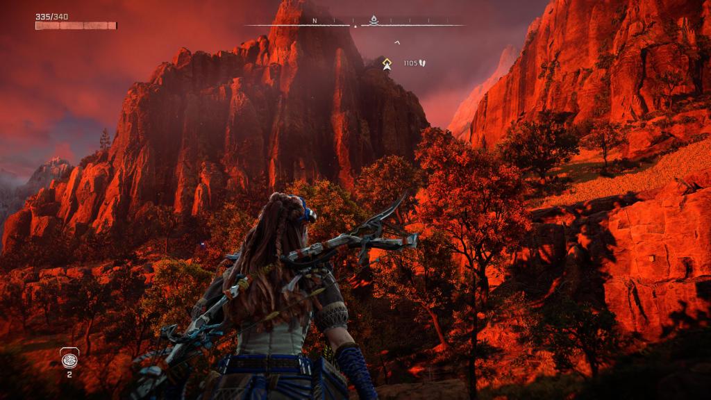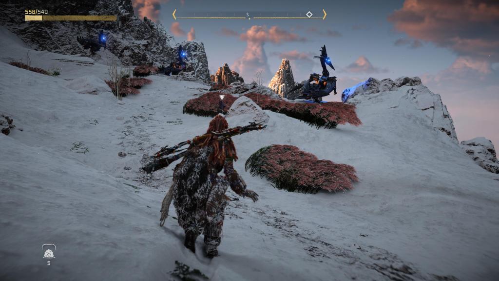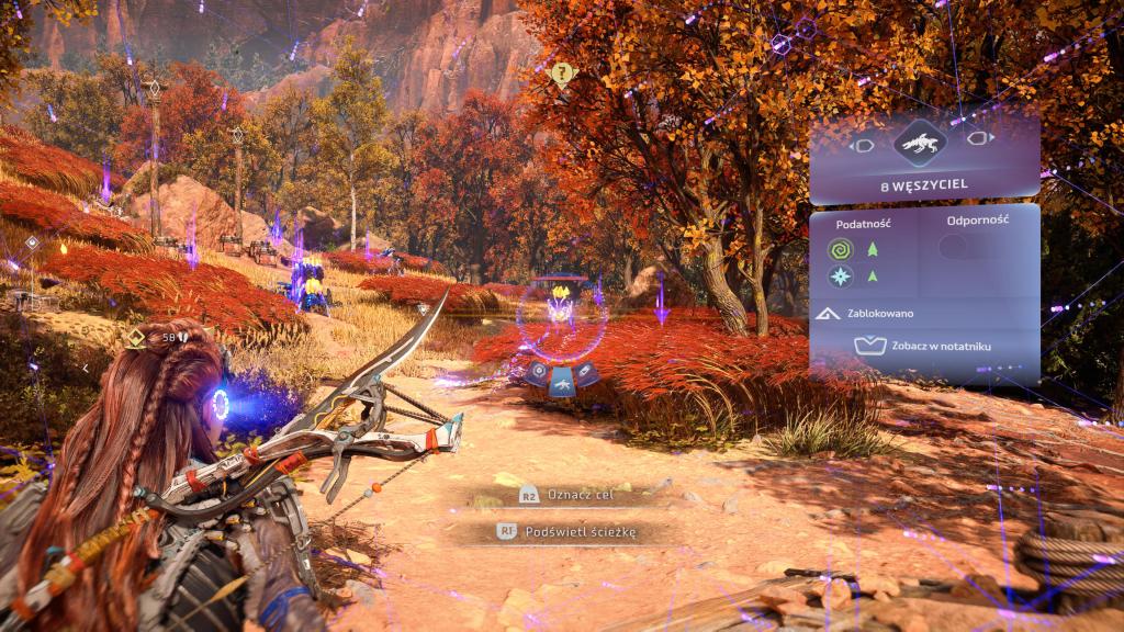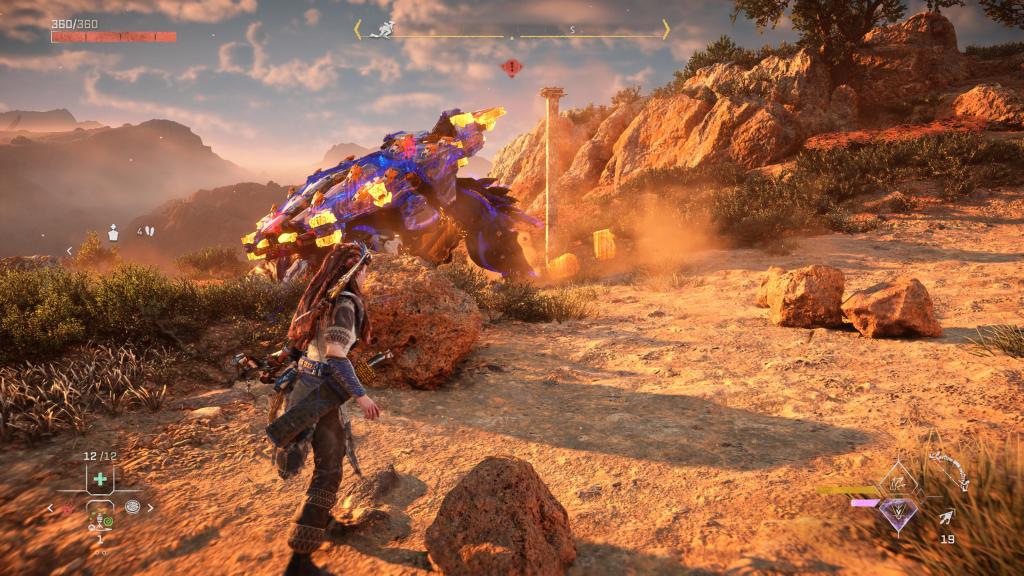 Rozbudowie uległ bestiariusz, tak więc teraz na nasze życie będzie czyhać jeszcze więcej zwierzo-podobnych maszyn (i to w kilku odsłonach), z których każda ma swoje słabe punkty czy wrażliwość/odporność na dany czynnik — te zaś możemy odkryć po zeskanowaniu ich naszym fokusem. Bez bicia przyznaję, że czasem dobór odpowiedniej taktyki czy broni może mieć ogromne znaczenie dla przebiegu starcia, tak naprawdę, niezależnie od tego, jak bardzo dopakujemy naszą rudowłosą. Jak już przy walce jesteśmy to i tu mam wrażenie, że jest tego sporo więcej — kilka rodzajów łuków (zarówno jeśli chodzi o skuteczny dystans, jak i rodzaj amunicji), proc, potykaczy, wyrzutni włóczni/oszczepów czy kusz, pozwala na naprawdę sporo zabawy podczas polowań czy starć z wrogim plemieniem (jakby komuś było mało, to może dodatkowo wprowadzić do swojej taktyki wszelkiego rodzaju pułapki). Do tego każdą broń możemy ulepszać na stole warsztatowym oraz dopakowywać zwojami, dodatkowo zwiększając jej parametry bojowe.
