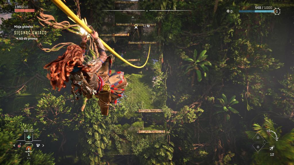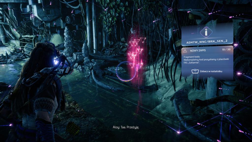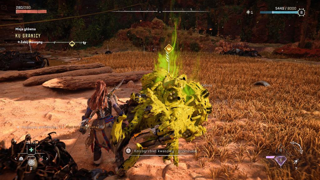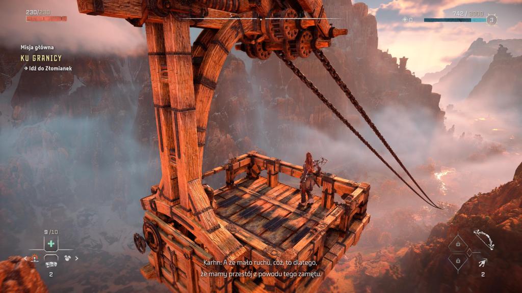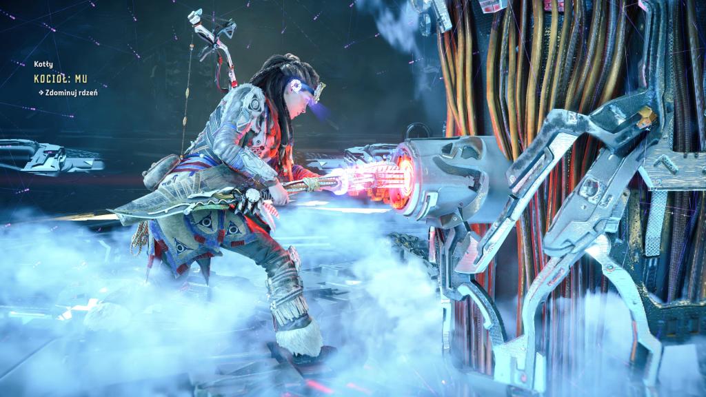 Horizon ogrywałem na PlayStation 5 i w zasadzie poza dwoma skokami wydajności, nie zanotowałem niczego irytującego, co nie dałoby się ogarnąć jakimś hot fixem (nieresponsywny przedmiot, zacinający się wrogowie — ot standard). Z dziwniejszych błędów, jakie spotkałem był samoistny restart misji pobocznej — miałem za zadanie powalić maszynę i porozmawiać potem z jedną z postaci, jednak po powaleniu maszyny i rozpoczęciu rozmowy, postać znikła i wróciła na swoją pierwotną pozycję (tak samo jak maszyna która się zrespawnowała). Miłym dodatkiem względem wydajności są w zasadzie niezauważalne ekrany ładowania, czy to samej gry, czy podczas podróży pomiędzy ogniskami.