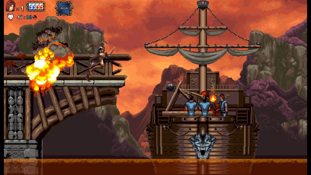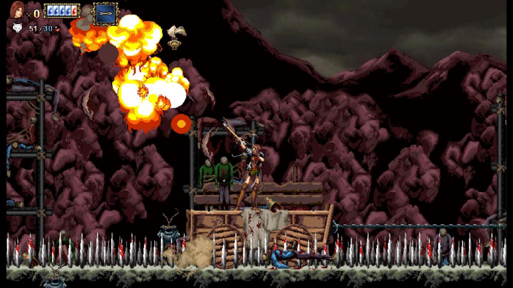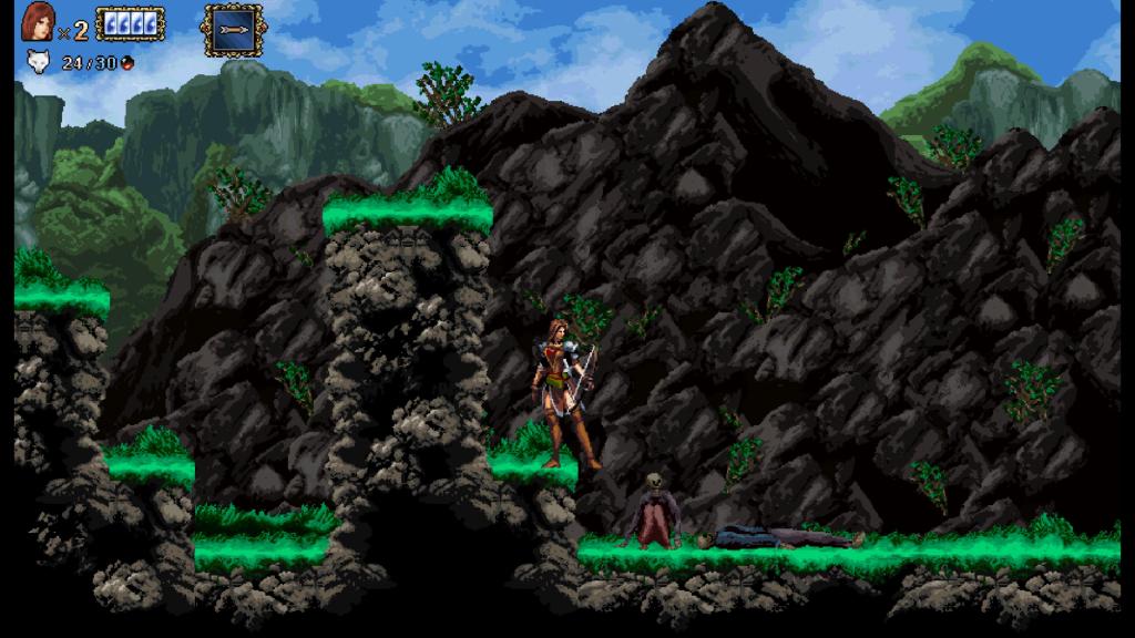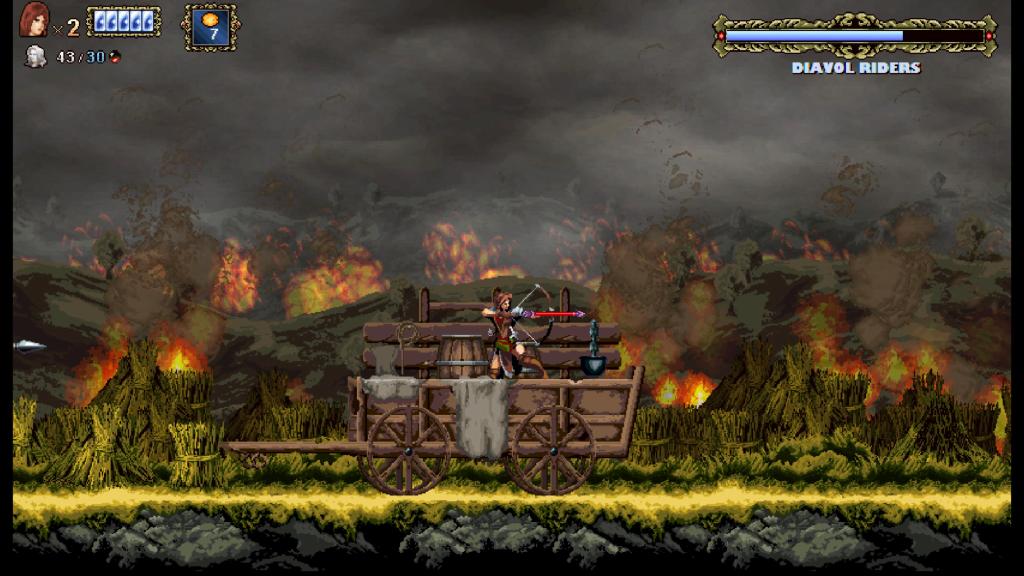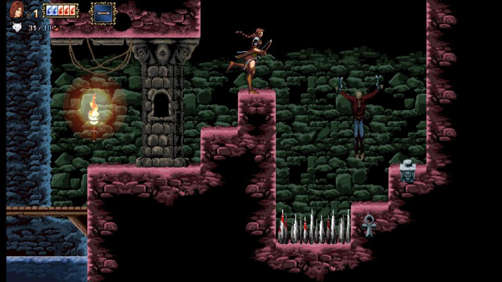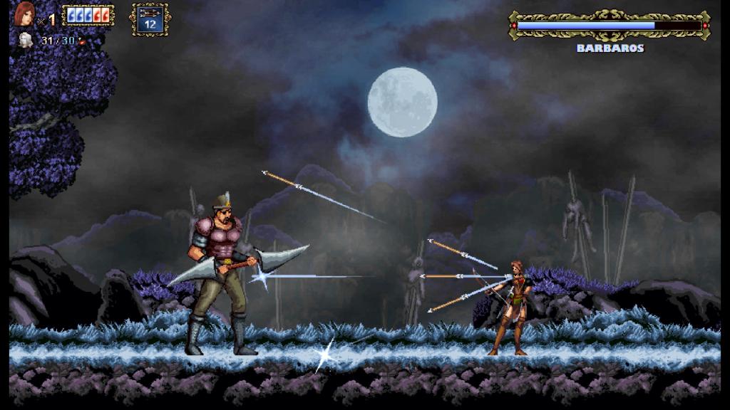 Choć inspiracje klasykiem od znienawidzonego Konami widać gołym okiem, to jednak gameplay nie jest kopią tego, co dostaliśmy w przygodach Simona Belmont’a, gdyż brak tu elementu eksploracji i backtrakcingu, mamy tu za to dynamiczną akcję rodem z Contry. Nasza Elcina wyposażona w łuk (do którego możemy zebrać kilka rodzajów strzał), miecz (pozwalający na odbijanie strzał przeciwników, czy ubicie wroga, który zbytnio się zbliżył) oraz kilkoro pomocników (z których każdy posiada inne aktywne/pasywne zdolności) przemierza kolejne ekrany od lewej do prawej, mordując wszystko i wszystkich co stanie na jej drodze. Choć słysząc Drakula, pierwsze co pewnie się nasuwa na myśl to Wampiry, nietoperze i inne zjawy, to tutaj w większości walczymy z bardziej ludzkimi i przyziemnymi przeciwnikami.