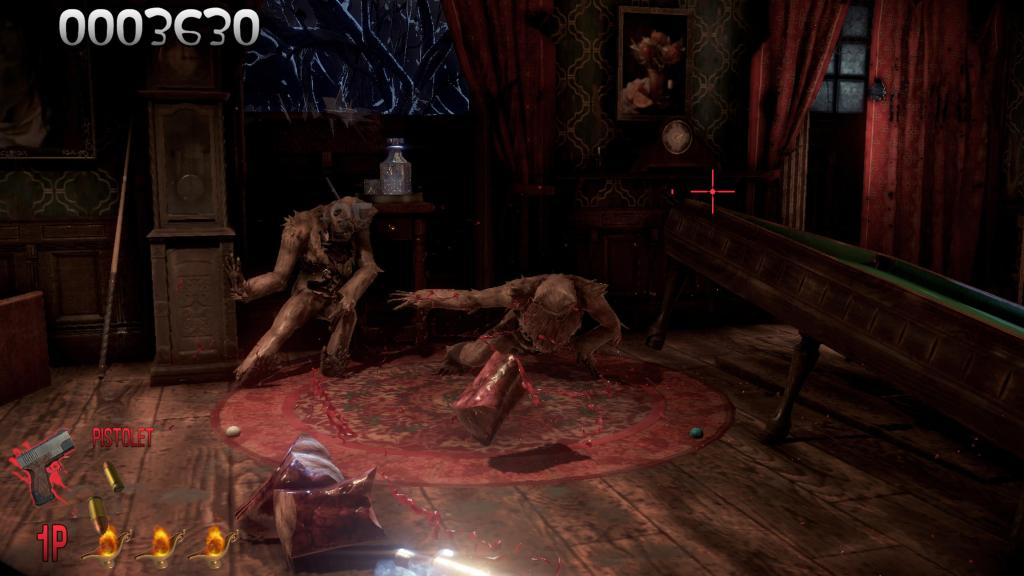 Jak wspomniałem wcześniej, mamy tu do czynienia ze strzelanką na szynach, w której nasza postać porusza się automatycznie od sceny do sceny, a naszym zadaniem jest wystrzelać wszystko, co pojawi się na naszym ekranie. Do naszej dyspozycji oddano dwa podstawowe tryby — klasyczny oraz hordę. W pierwszym zwykle stajemy naprzeciw kilku zombiaków, w drugim natomiast ratuj się kto może. Dodatkowo możemy wybrać jeden z kilku poziomów trudności, zmienić sposób naliczania punktów czy zaprosić do gry kogoś znajomego. Samo strzelanie jest naprawdę satysfakcjonujące, kiedy widzimy jak atakujące nas maszkary rozlatują się na części — co nie zawsze jest takie proste i nie oznacza również ich natychmiastowej śmierci. Co jakiś czas przyjdzie nam również zmierzyć z nieco silniejszymi przedstawicielami braku pulsu, w których przypadku musimy poznać ich schemat ataku, słabe punkty i wykorzystać to do wyzerowania ich paska życia