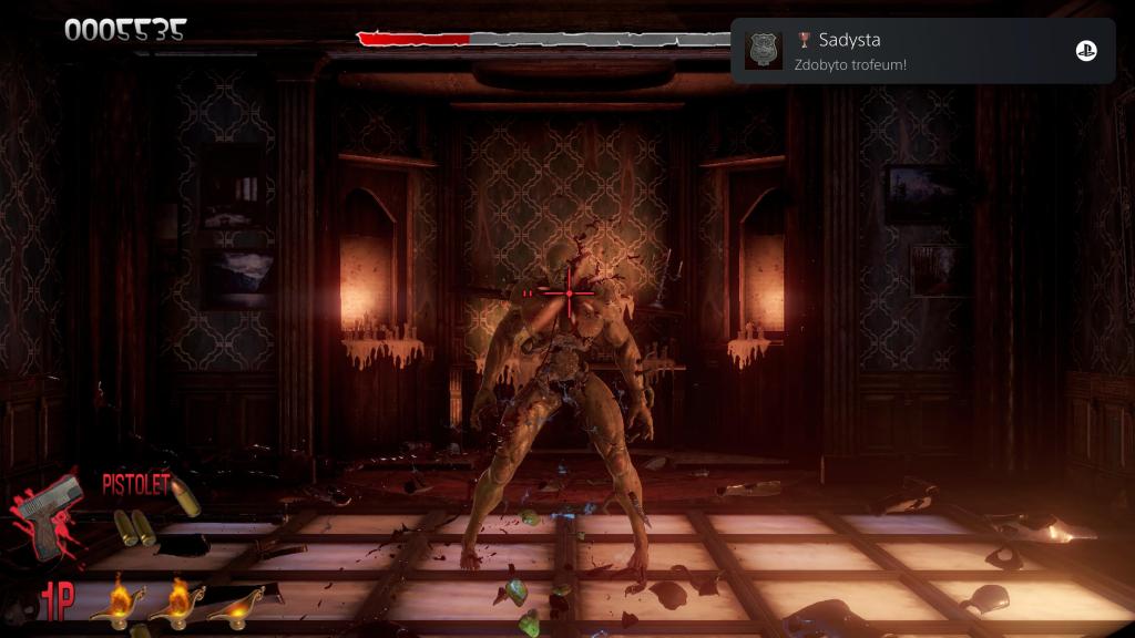 Choć początkowo nieco obawiałem się sterowania (dla mniej wytrwałych, twórcy dorzucili opcję wspomagania) padem. Moje obawy spełniły się można powiedzieć połowicznie — próba sterowania przy pomocy wbudowanego w DualSense żyroskopu to kompletny rollercoaster dla naszego celownika, naprawdę podziwiam jeśli komuś udało się tym sensownie przycelować. To, czego mi zabrakło to obsługa PS Move, bo choć samo rozwiązanie „ruchowe” od Sony nie można nazwać idealnym (w tej materii wydaje mi się, że Nintendo wygrało) to w przypadku tego typu gier sprawdza się naprawdę nieźle, szczególnie kiedy dokupimy sobie akcesoria pozwalające je przekształcić w pistolet (co ciekawe na PS3 otrzymaliśmy The House of the Dead: Overkill Extended Cut i polecam tę odsłonę każdemu posiadaczowi świecących dildo do PS).