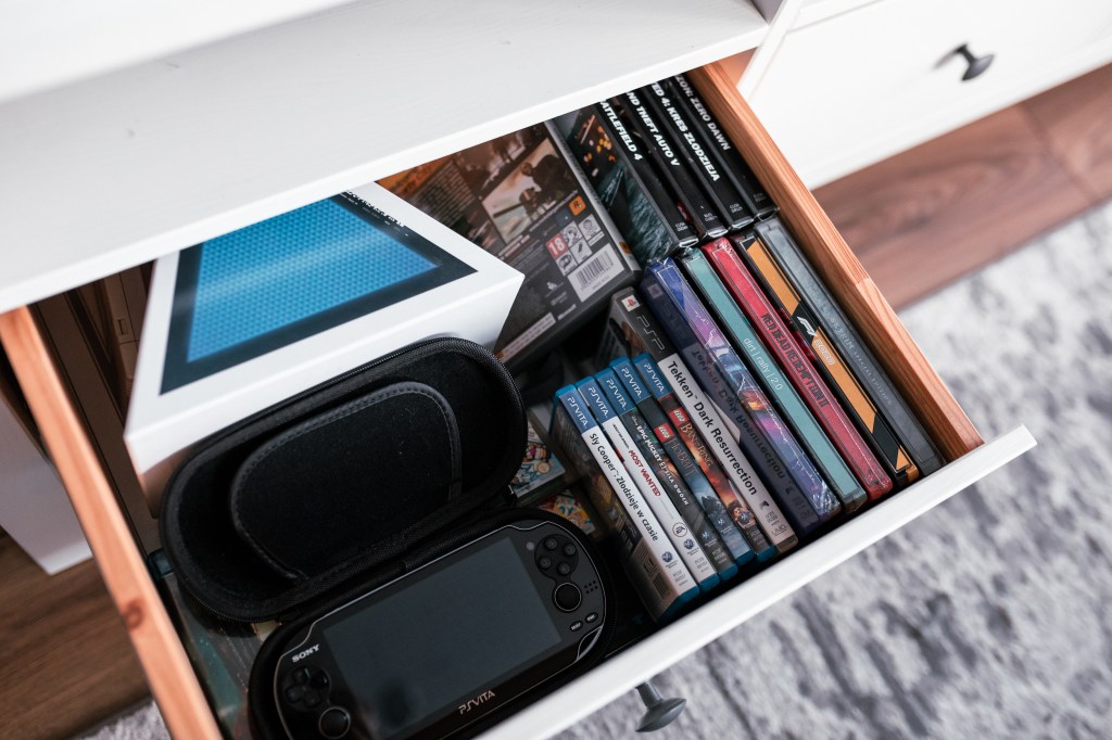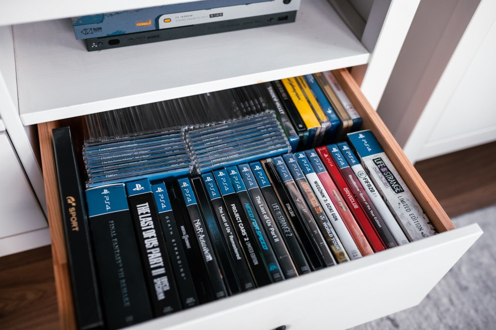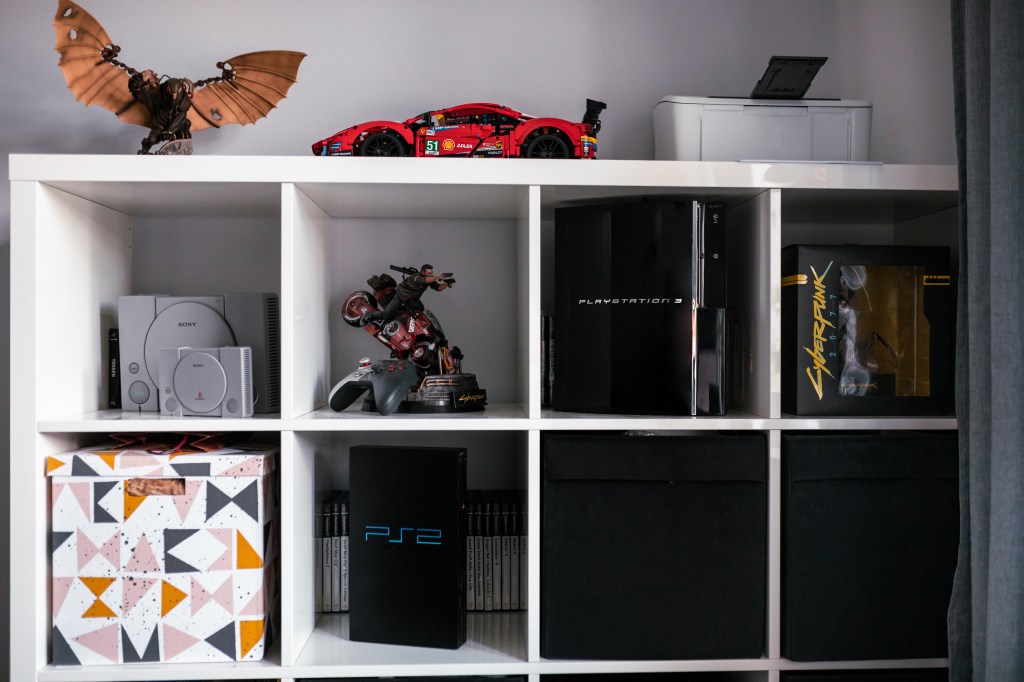 Powoli zbliżam się do określenia jej jako odpowiednia. Chciałem mieć wszystkie konsole PlayStation w wersji FAT — od jedynki aż po piątkę. Jestem już pod koniec osiągnięcia tego celu, więc na mojej półce znajdziecie już prawie wszystkich reprezentantów kolejnych generacji oraz skromny pakiecik gier na nie. Poza tym na dobrą sprawę zamykam się w trzech szufladach pod telewizorem. No może jeszcze znajdzie się kilka figurek i kolekcjonerek, które z braku miejsca w znacznej większości wylądowały w domu moich rodziców.