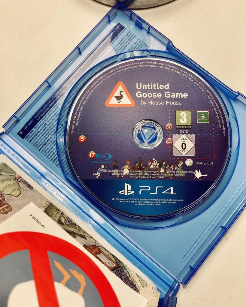 Ostatnio natrafiłem na ciekawe wydanie gry Untitled Goose Game. Po otwarciu opakowania okazało się, że z grafiki na płycie nie usunięto oznaczeń przeznaczonych dla tłoczni. Ciekawa ironia w kontekście tego, o czym jest ta gra. Od razu nasuwa się pytanie, czy to umyślne działanie pewnej gęsi? Okazało się jednak, że wydania z innymi kodami CUSA tego nie mają, więc myślę, że kolekcjonerska wartość tego konkretnego egzemplarza urosła.