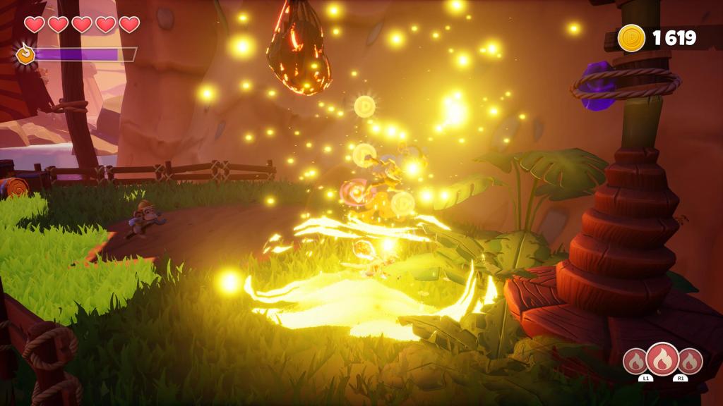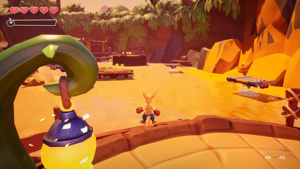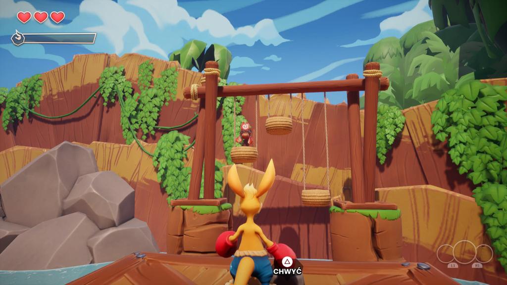 Cóż jak widać fabuła nie należy do przesadnie zawrotnych, ale przecież to nie gra od Kojimy, aby snuć nieskończone teorie i rozmyślać co autor miał na myśli. Przyjdzie nam przemierzyć cztery krainy, z których każda wypełniona jest znajdźkami, poziomami do przejścia, wraz z finalnym bossem do pokonania. Już na pierwszy rzut oka rysuje się obraz oldschoolowej platformówki 3D, w której znajdziemy wręcz obowiązkowy zestaw w tego typu produkcjach jak dżungla, lodowa kraina, plaże, elementy sci-fi, sekretne przejścia czy ucieczki rodem z Indiana Jones’a — dosłownie niczym generator platformówek z lat 90. To, co jednak odróżnia Kao od takiego Crash’a to poziom trudności, który tutaj raczej nie powinien przyprawić o ból głowy, a kolejne poziomy przechodzi się dość płynnie (nawet z opcjonalnymi, bonusowymi sekcjami). Wyjątkiem są starcia z bossami, bo choć nie są to walki rodem z Souls’ów, to jednak porównując je do reszty rozgrywki, mogą stanowić czasem wyzwanie. Na plus zasługuje ogólny design gry, bo choć to nie Unreal 5 i wizualizacje rodem z Pixara to kolorowa całość cieszy oko i jest naprawdę różnorodna (tyczy się to zarówno projektów lokacji jak i przeciwników).