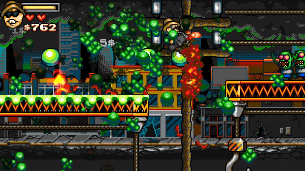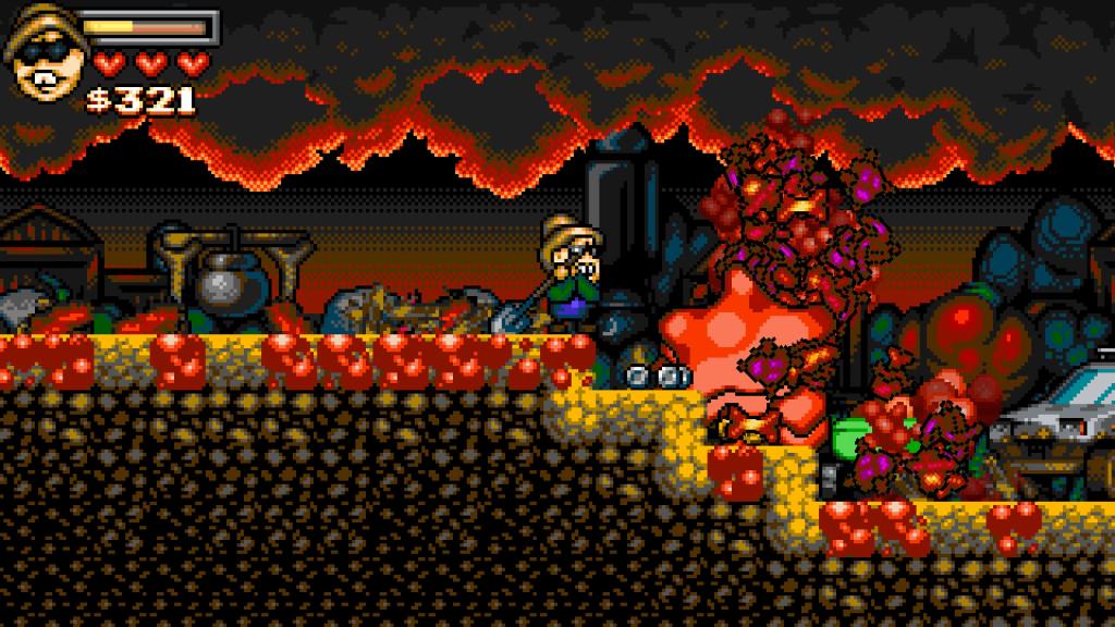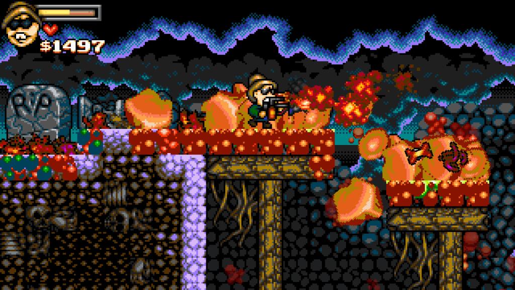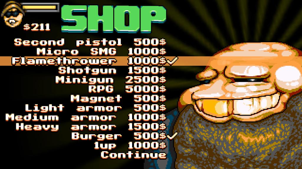 Graficznie twórcy wybrali drogę pixel-art’u i wyszło im to całkiem nieźle, szczególnie biorąc pod uwagę design naszych przeciwników i morze posoki, jaka się z nich leje. Niestety pomimo ogólnej prostoty zdarzyło się, że rozgrywką sobie nieco chrupnęła na PS5, a dodatkowo sterowania bywa dość nieprecyzyjne, co w pewnych sytuacjach może oznaczać, że Wujaszek trafi do piachu (na szczęście rozgrywkę można wznowić bez większego problemu). Przejście całości nie powinno zająć dłużej niż 2-3 godziny, co i tak nie jest najgorszym wynikiem, biorąc pod uwagę prostotę produkcji oraz jej cenę.