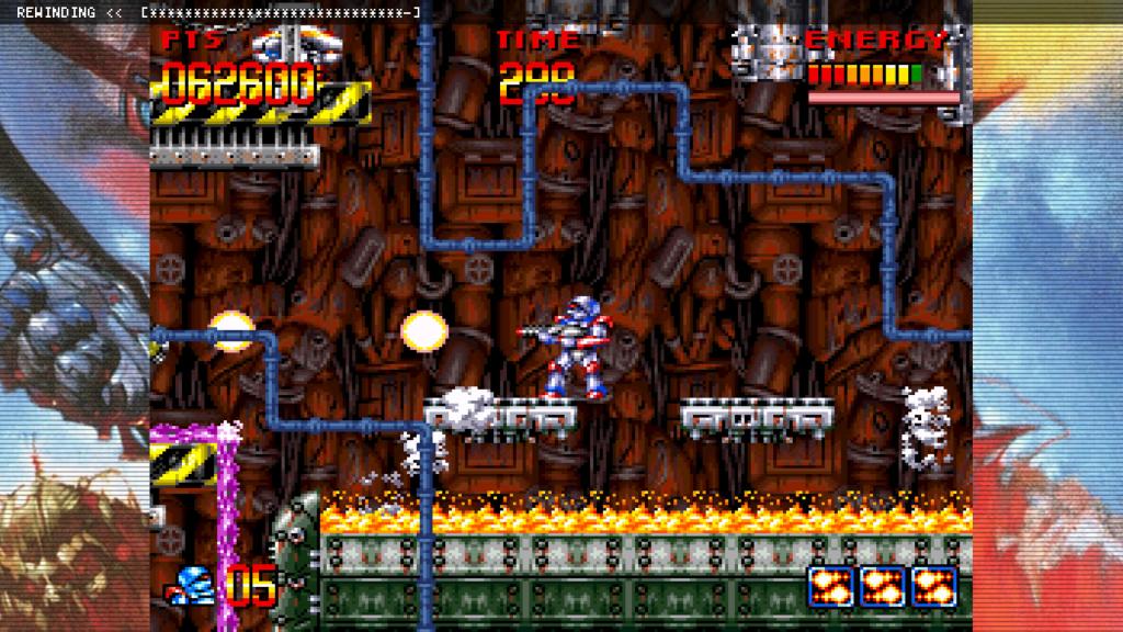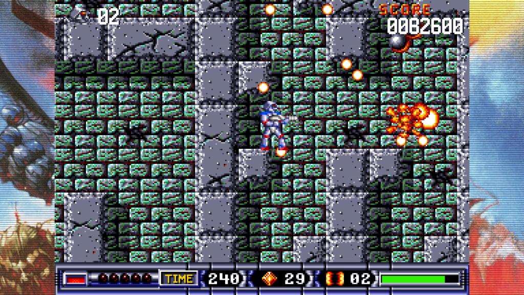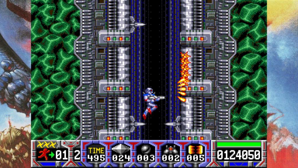 W zasadzie przez wszystkie części przewija się dość utarty schemat jeśli chodzi o rozgrywkę — nasz bohater brnie we wszystkich kierunkach (mamy tu mocne ciągoty w stronę gatunku, jakim jest Metroidvania, jak i klasycznego Run and Gun ala Contra), zabijając po drodze kolejne fale mniej lub bardziej potężnych przeciwników, aby finalnie zmierzyć się z ostatecznym bossem. Do dyspozycji mamy sporą ilość power-up’ów modyfikujących nasze uzbrojenie; ataki specjalne; dodatkowy promień unieruchamiający, działko, linkę (zależnie od części gry); czy też możliwość zamiany się w kolczastą kulę i podkładanie ładunków wybuchowych. Odniosłem wrażenie, że z każdą kolejną odsłoną, całość była nieco upraszczana, aby stać się bardziej liniową strzelanką — Czy było to spowodowane odbiorem gry w tamtych czasach? Czy też wygrało zwykłe lenistwo twórców? Tego niestety nigdy się nie dowiemy.