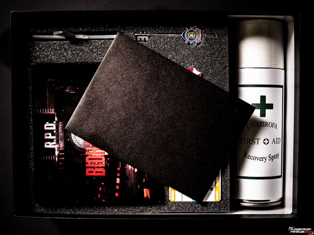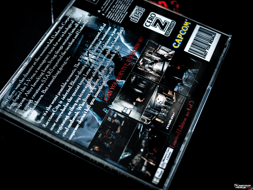 - Płytę z czarnym spodem i oldschoolowym nadrukiem z oryginalnego wydania RE2 na PSX