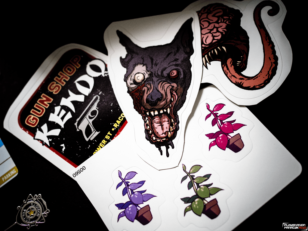 - Zestaw naklejek z motywami nawiązującymi do gry (projekty naklejek autorstwa Velagala, rubenlopezart, Kefliboo, Zombie-Otter)