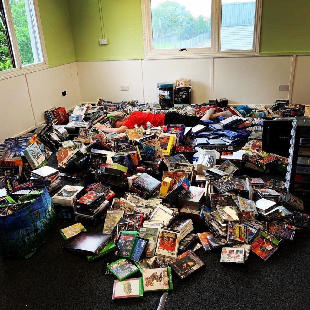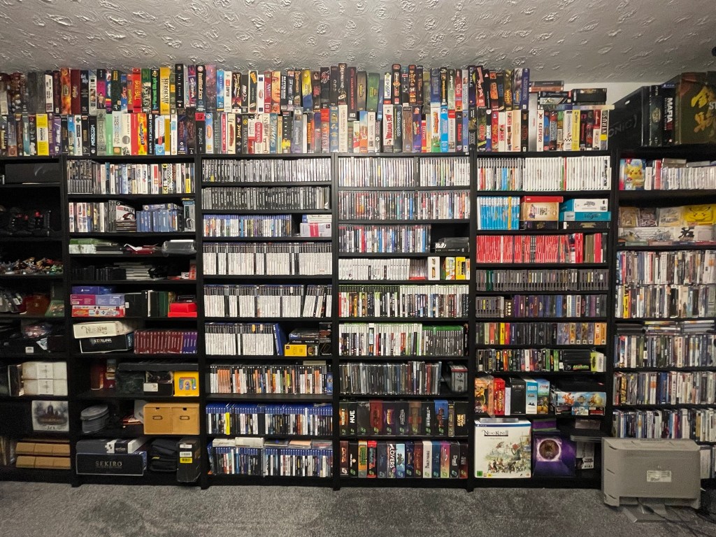 W tym momencie naprawdę ciężko stwierdzić. Zawsze obiecuję sobie, że kiedyś wszystko skataloguję. Starych gier na PC mam na pewno tysiące, w tym ponad 100 dobrze zachowanych Big Boxów. Około 1000 mam też pewnie gier PS1-PS5. Do tego setki płyt na inne platformy, kartridżów itd. Przez jakiś czas wynajmowaliśmy studio nagraniowe, gdzie ciężko było pomieścić się z wszystkimi grami, gadżetami i figurkami z kolekcjonerek na 100m2.
