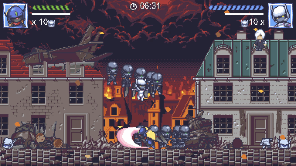 - Pikselowa grafika w stylu „Chibi Anime”, z otoczeniem pełnym detali.