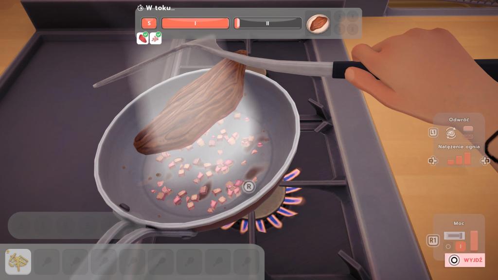 Jak już ogarniemy co i jak, możemy przejść do „mięsa” (w przenośni…i dosłownie w tym przypadku), mianowicie gotowania. Schemat jest prosty, klienci przychodzą, są obsługiwani przez naszą załogę, a na kuchnie trafiają kolejne zamówienia, które musimy wydać w określonym czasie jak i czasami w określony sposób, wedle preferencji naszej klienteli. Cały proces sprowadza się do dobrania odpowiednich składników do przepisu i przejścia od stanowiska do stanowiska, wykonując kolejne czynności jak krojenie, smażenie, gotowanie, finalnie układając wszystko na talerz. Proste prawda? Skoro pytam, to już pewni wiecie, że nie do końca.