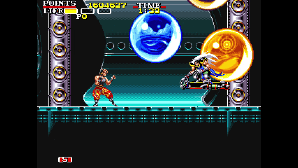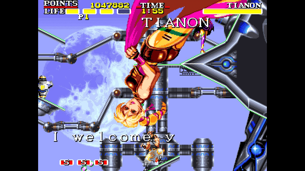 Jako że to nie pierwsze rodeo dla Inin Games, to mamy tu w zasadzie ten sam zestaw ficzerów co przy ich poprzednich wypustach — proste menu z możliwością wyboru gry (mamy tutaj wydanie zachodnie, jak i japońskie), jej trybu, włączenia ułatwień, kodów, zmiany ustawień (w tym filtry graficzne); cofanie rozgrywki w czasie rzeczywistym; możliwość zapisu i załadowania gry w dowolnym momencie. Wszystko to sprawia, że hardkorowy poziom będący rzeczą naturalną dla tytułów arcade z danych lat, staje się nieco mniej trudny do przeskoczenia. Przekłada się to też na czas gry, bo w zasadzie tytuł można ukończyć w jakąś godzinę, nie spiesząc się za bardzo. Zanim podniosą się głosy niezadowolenia, to trzeba pamiętać, że Canon Dancer to gra arcade, a one nigdy nie grzeszyły długością rozgrywki, co było kompensowane właśnie poziomem trudności, powodującym znikanie kolejnych żetonów z naszych kieszeni.