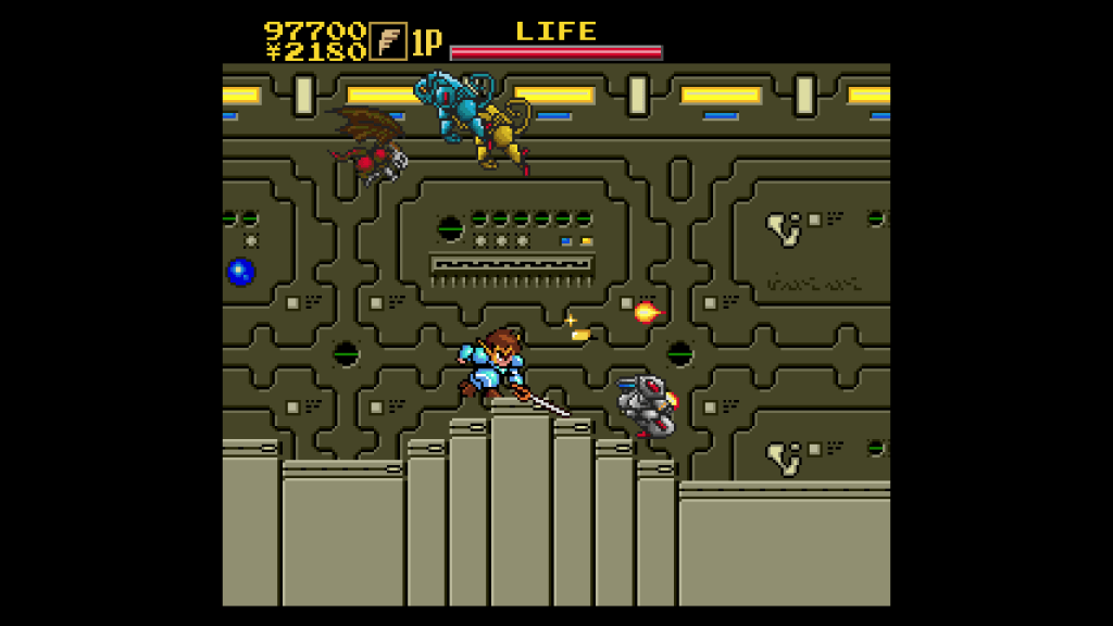 Tytuł od Masaya Games, pierwotnie ukazał się w 1989 roku, tylko w Japonii, na sprzęcie PC Engine / Turbografix-16, co już z miejsca uczyniło go „niszowym” dla reszty świata i dostępnym zapewne tylko dla garstki entuzjastów tego sprzętu na świecie. Mamy tu do czynienia z dwuwymiarową plaformówką, przypominającą nieco serię Mega-Man, naszymi bohaterami są Tasuke i Kyapiko (w tym przypadku dwójka bohaterów oznacza też, że mamy tutaj zaimplementowany najlepszy rodzaj rozgrywki multiplayer, jaki widział świat — kanapowy coop!), androidy, będące tworem naukowca zwanego Doc, które to są tytułowymi „Shockman’ami”. Zadanie jak to zwykle w tego typu grach bywa, jest dość proste — uratować świat! W tym przypadku mamy 18 dni (każdy dzień = jeden poziom), aby wytłuc wszystkich członków Skull Force z Dark Skullem na czele.