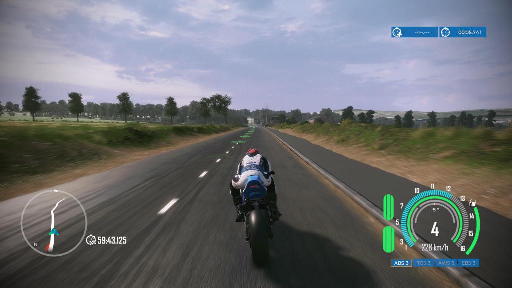 Oprócz mnogości wyścigów, wyzwań, zawodników i motocykli dochodzi jeszcze jeden bardzo ważny aspekt, mianowicie prowadzenie. Tu nastąpiło moje zderzenie się z kulą do wyburzania, kiedy to bez sprawdzania jakichkolwiek ustawień, rozpocząłem jazdę od odkręcenia manetki do oporu…aby pięć metrów później rozpłaszczyć się na betonie jak żaba przejechana przez walec. Po otrząśnięciu się z początkowego szoku zacząłem przeglądać wszystkie możliwe opcje i już po chwili zrozumiałem, że nie będzie tutaj miękkiej gry. Sam poziom trudności podzielony jest na dwie części — ustawienia SI przeciwników oraz poziomy symulacji, który ma bezpośredni wpływ na to, jak zachowuje się nasz motocykl. Do tego dochodzą możliwości sterowania kontrolą trakcji, systemu ABS, ustawienia kontroli hamulców, skrzyni biegów czy nawet pozycji naszego zawodnika na maszynie podczas przyśpieszania. Ogólnie miałem trochę wrażenie, jakbym odpalił wyścigi tworzone przez autorów Souls-like’ów — wyzwanie ogromne, ale satysfakcja z bezbłędnego pokonania wyścigu (nie mówiąc o zwycięstwie) jeszcze większa.