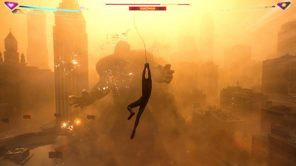 Start gry to jednocześnie walnięcie w pysk srogiego kalibru — widać, że ktoś tu jest fanem szkoły Hitchcocka — gdyż zanim zdążymy się w jakikolwiek sposób zadomowić w obecnej sytuacji, musimy wbić się w obcisłe wdzianka i ratować miasto przed zagrożeniem, które może dosłownie pogrzebać je żywcem. Po opanowaniu sytuacji możemy nieco odsapnąć i zanurzyć się w życiu naszych bohaterów. Tym razem postanowiono oddać do naszej dyspozycji, dwóch w pełni grywalne postacie (a nawet trzy), wraz z odrębnymi dla nich liniami fabularnymi, w których to Peter, naznaczony już przez brzemię superbohatera, stara się ułożyć swoje życie po śmieci Cioci May, mając u boku Mary Jane oraz Harrego; Miles natomiast, choć nieco starszy niż w momencie kiedy go poznaliśmy, to nadal jest nieopierzonym dzieciakiem, który dopiero co kończy liceum, planuje studia i życie wraz ze swoimi przyjaciółmi. Choć każdy z nich ma swój świat, to nie zapominajmy, że wspólnie dbają o bezpieczeństwo mieszkańców Wielkiego Jabłka, a to zagrożone jest przez Kravena — tajemniczego łowcę, który wraz ze swoją świtą, urządza sobie polowanie w miejskiej dżungli, na jego zdaniem „najpotężniejsze bestie”, w postaci dobrze nam znanych już antagonistów — oraz twór zwany Symbiontem, który przez dziwny splot wydarzeń, staje się (dosłownie) integralną częścią życia naszych bohaterów.