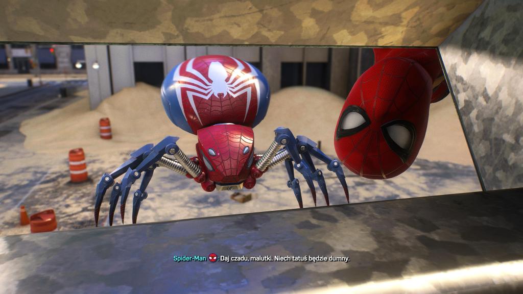 W przypadku wykonania technicznego, to pozwolę sobie zacząć od pochwały za sam fakt porzucenia poprzedniej generacji przez twórców i nietworzenia na siłę produktu międzygeneracyjnego — wiem, że przez to ucierpiało pewnie sporo graczy, którzy zagrywali się w pierwszego Pająka i „DLC” w postaci Milesa, jednak uważam, że 3 lata na rynku PS5 to chyba wystarczający czas, aby podjąć decyzję o ewentualnej przesiadce. Poskutkowało to tym, że deweloperzy mogli spokojnie skupić się na dopracowywaniu produkcji w oparciu o obecne bebechy konsoli, a nie na optymalizacji dla wielu architektur sprzętowych, czego efektem jest naprawdę rewelacyjnie wyglądająca i działająca (z kilkoma drobnymi zgrzytami, ale do tego przejdę za chwilę) produkcja.