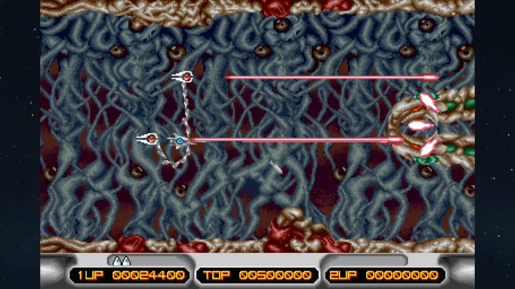 Zaznaczę na początek, że mamy tu do czynienia z pierwszą, z bodajże pięciu zaplanowanych kompilacji, więc finalny obraz całego tego projektu poznamy dopiero pewnie w przyszłości. Volume 1 to kolekcja trzech shoterów z lat 1988-1992 – Image Fight wraz z sequelem o podtytule Operation Deepstriker oraz X Multiply. O ile pierwsze dwa to standardowe opowieści o samotnym pilocie ratującym świat przed zagładą, tak X Multiply wyłamuje się tu nieco nie tylko gameplay’em (następuje tu drobna zmiana z wertykalnego shootera na horyzontalnego), ale również umiejscowieniem, gdyż akcja przenosi się do wnętrza ludzkiego ciała, a nasz arsenał oprócz dział i laserów powiększa się o macki.