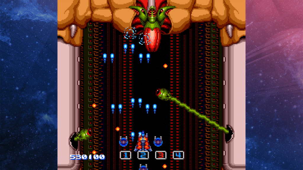 Trudno mi tu tak naprawdę recenzować każdy tytuł z osobna, bo mechaniki w nich zawarte są w gruncie rzeczy takie same — niszcz napotkanych wrogów, omijaj fale pocisków, zbieraj coraz potężniejsze ulepszenia uzbrojenia, aby finalnie stanąć „statek w statek” z wielkim bossem, którego trzeba posłać na tamten świat. Wszystko to oczywiście ubrano w odpowiedni poziom trudności, aby przypomnieć nieco graczom jak wyglądała kiedyś rozgrywka na automatach.