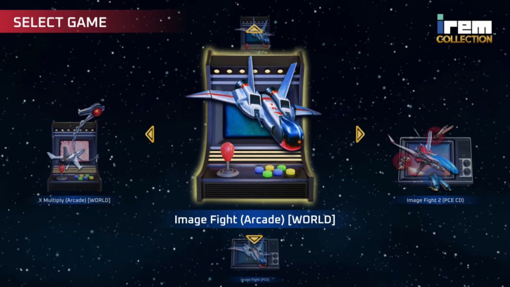 Mega miłym dodatkiem jest tu dodanie innych wersji/portów poza główną — arcade — dzięki czemu mamy okazję zobaczyć jak Image Fight wyglądało na NES’ie czy PC Engine i PCE CD (czyli konsolce, o której w naszym kraju słyszało jakieś dziesięć osób, a posiadało ją może z pięć, badum tss), co nawet dla znających ten tytuł może być pewną niespodzianką, bo wydania te pojawiły się na określonych rynkach.