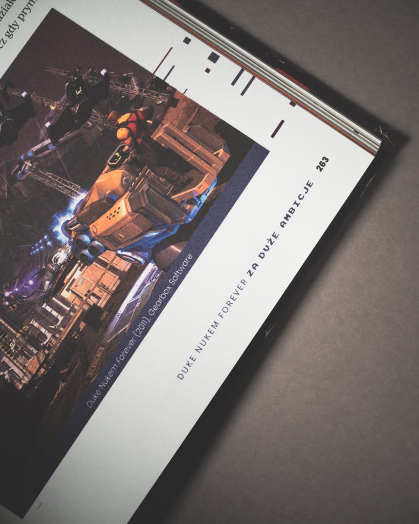 Świetnym przykładem jest rozdział o Duke Nukem Forever. Duke’a pamiętam jeszcze z czasów, Duke Nukem 2, kiedy Król mógł poruszać się co najwyżej od lewej do prawej, a i tak zagrywałem w niego na kółku komputerowym w naszym lokalnym Miejskim Domu Kultury. Potem przyszło Duke Nukem 3D, które dosłownie rozwaliło głowy mi i moim kolegom. To był ten moment, kiedy każdy z nas znał poziomy na pamięć, a i tak odpalał grę ponownie (tak tak, każdy też wiedział co robią tańczące Panie). Pamiętam też całe to „Forever” (z dzisiejszej perspektywy podtytuł nie mógł być bardziej trafiony), kolejne zapowiedzi, artykuły, obietnice, wieczne przekładanie premiery, a potem finał, który okazał się… no właśnie. Choć całość historii ostatniego Duke’a plasuje go wśród przegranych, to ja muszę przyznać, że mi osobiście sprawiła sporo frajdy (no może poza tymi cholernymi czasami ładowania).
