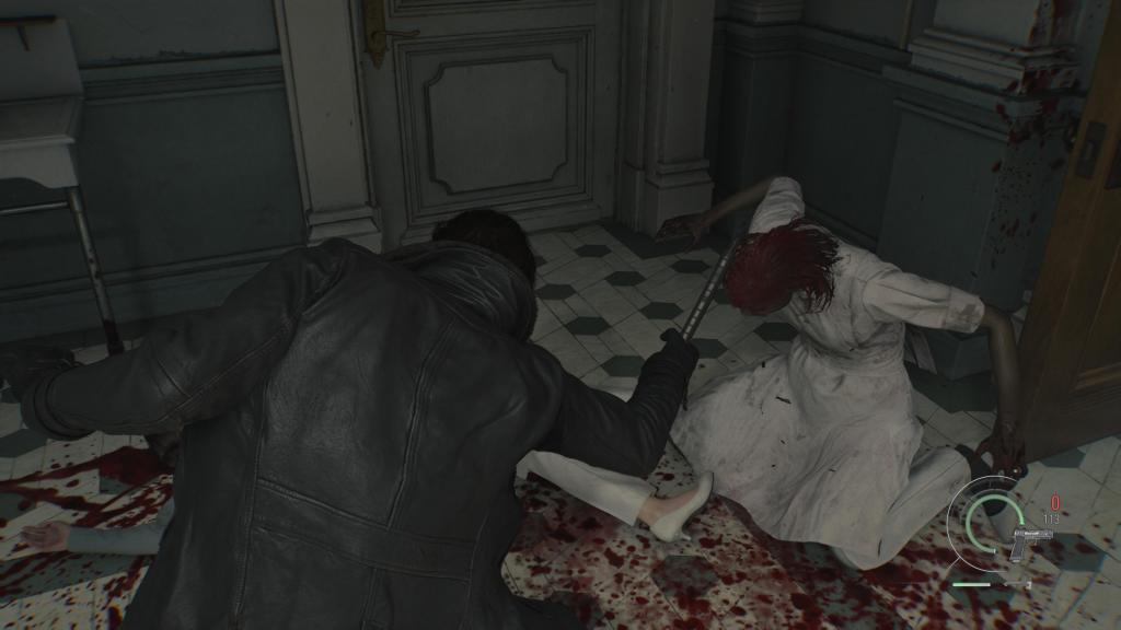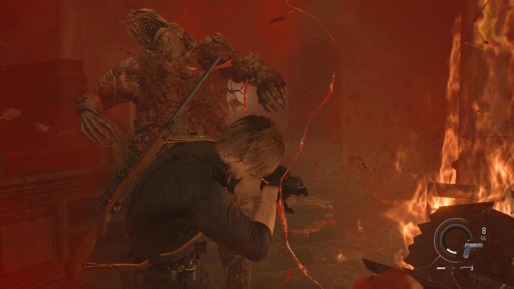 Leon to przeciwległy biegun — action horror. Starcia są częstsze, bardziej bezpośrednie i brutalniejsze. Gra premiuje efektywne eliminowanie przeciwników systemem punktowym, który pozwala inwestować w rozwój wyposażenia. Najlepszym symbolem tej zmiany jest topór — nowy element stylu walki Leona, który pokochałem od pierwszego rozłupania łba zombiaka. Sprawdza się do wszystkiego niczym brutalny Thermomix — parowanie, dobicie czy zwykły atak, wybierzcie sobie. Podobnie jak każda broń biała w serii, zużywa się, jednak tym razem można przywrócić go do pełnej sprawności poprzez ostrzenie.